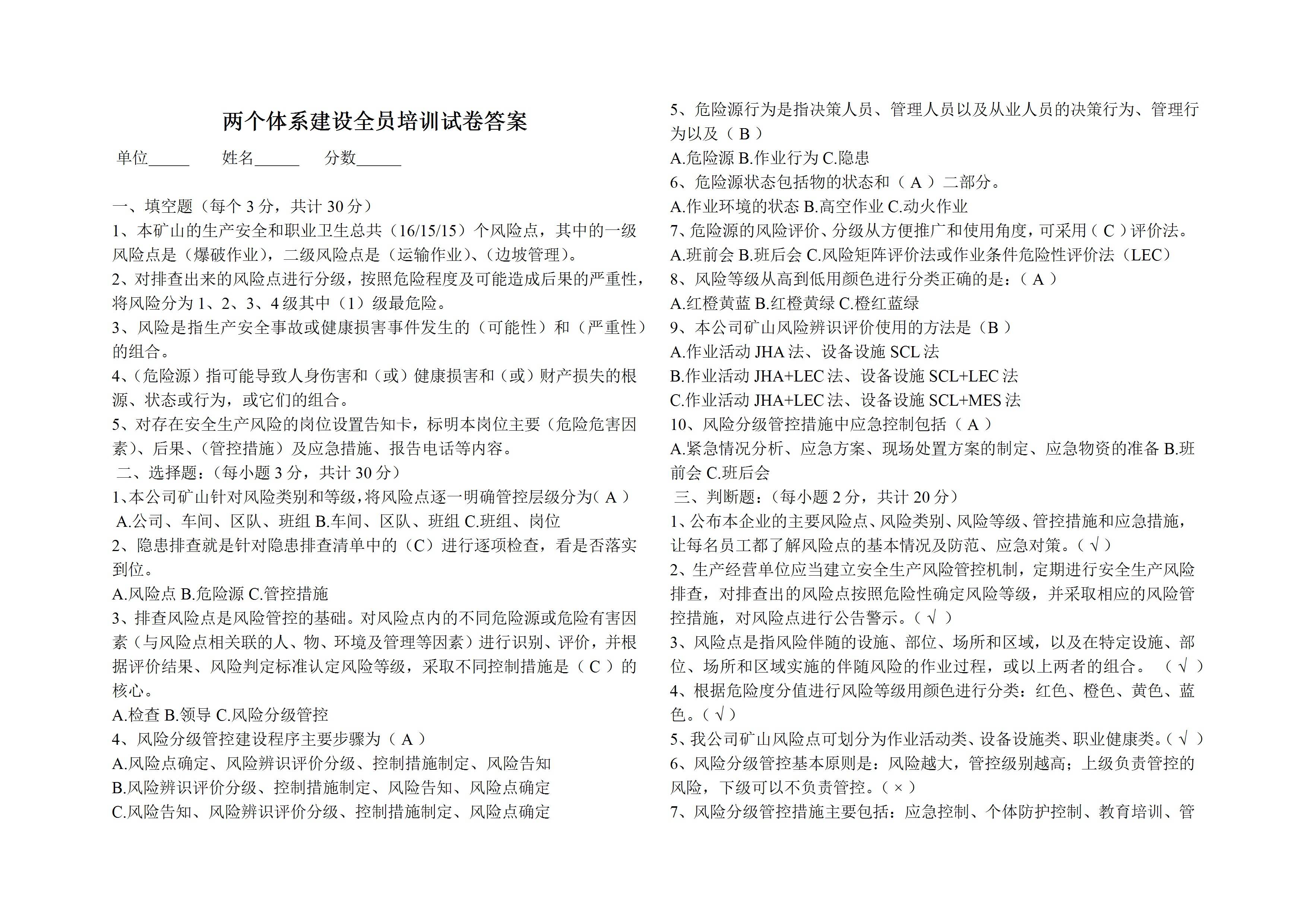 两个体系建设全员培训试卷答案