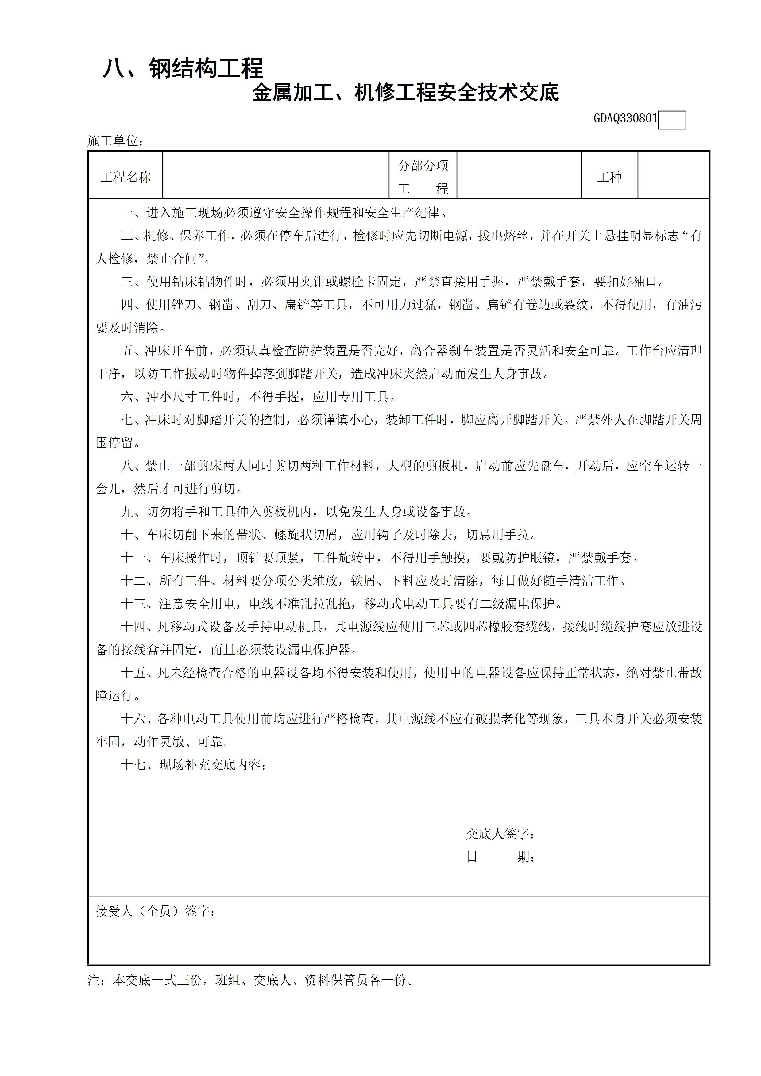 / 金属加工,机修工程安全技术交底GDAQ330801