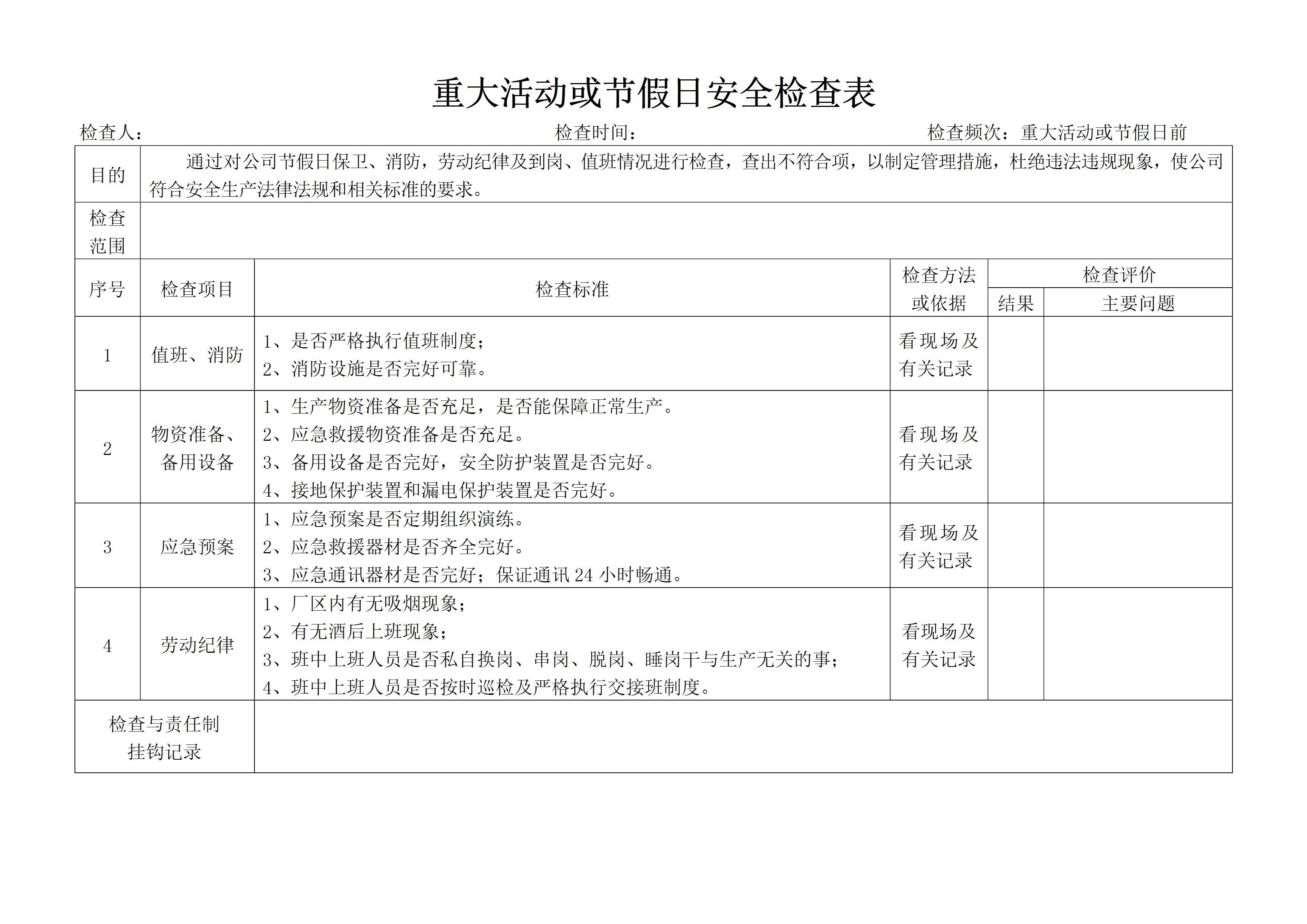 / 节假日安全检查表