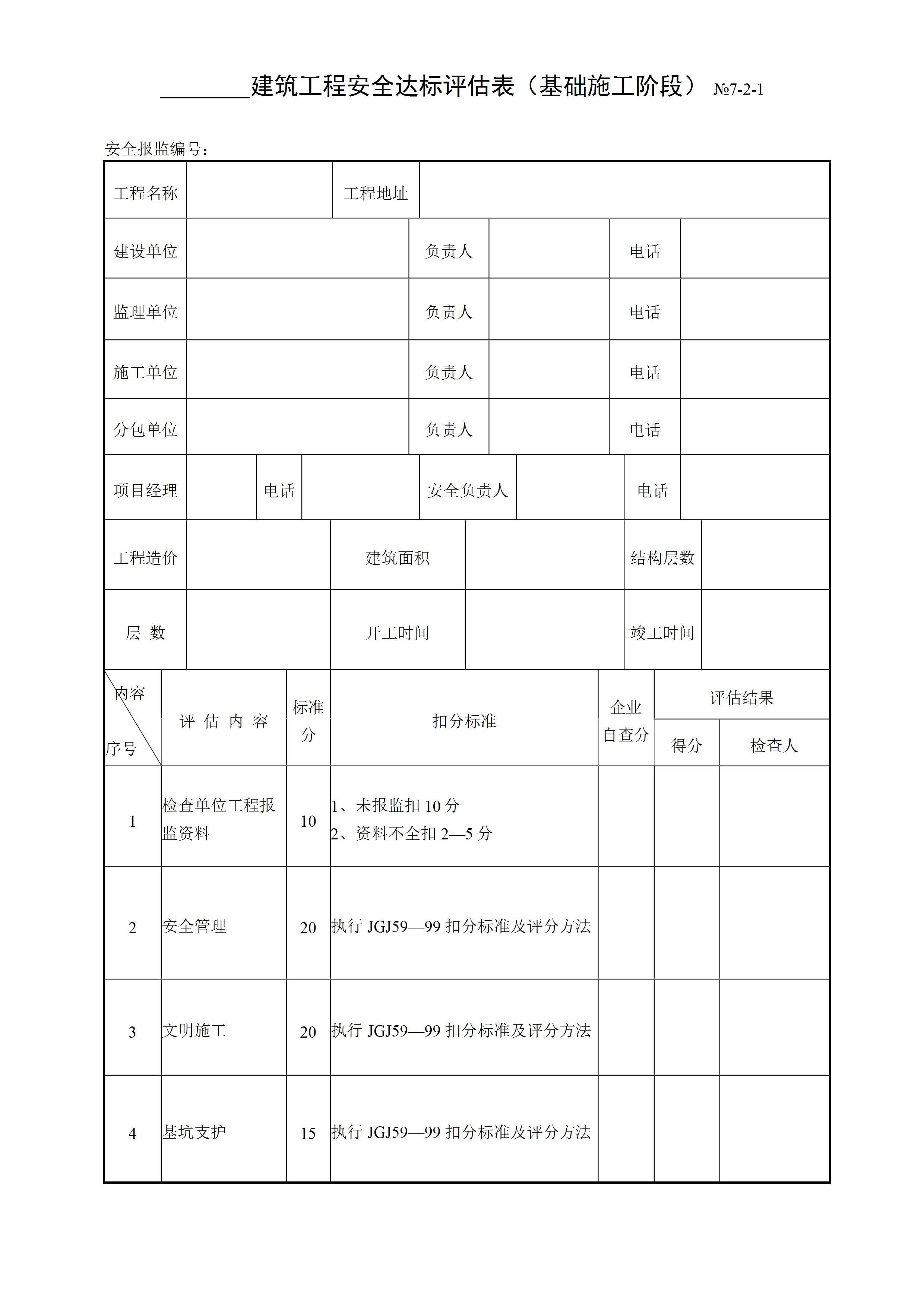 建筑工程安全达标等级评估表(基础,结构及装饰)