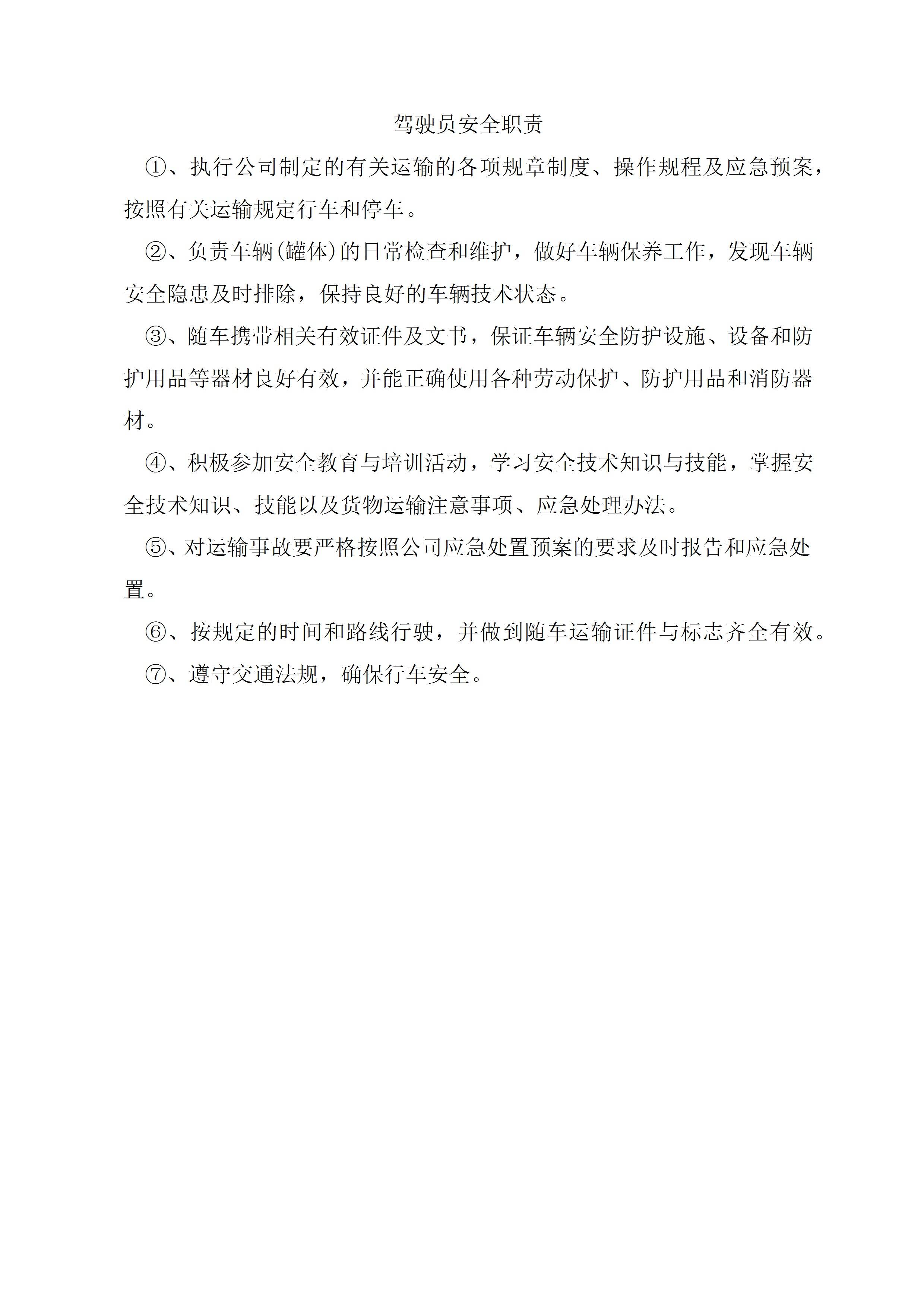 驾驶员安全生产责任制