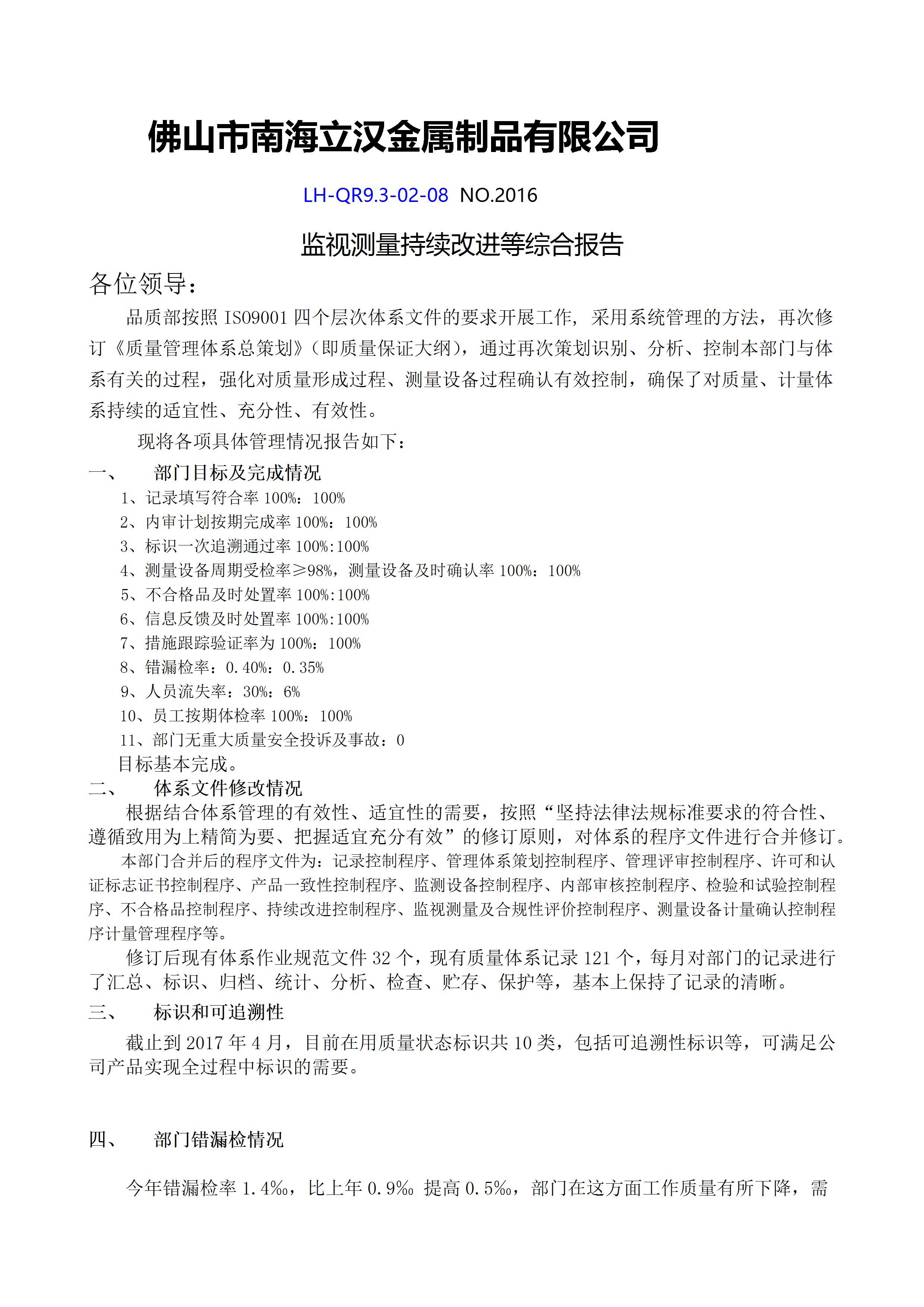 / 监视测量持续改进等综合报告品管