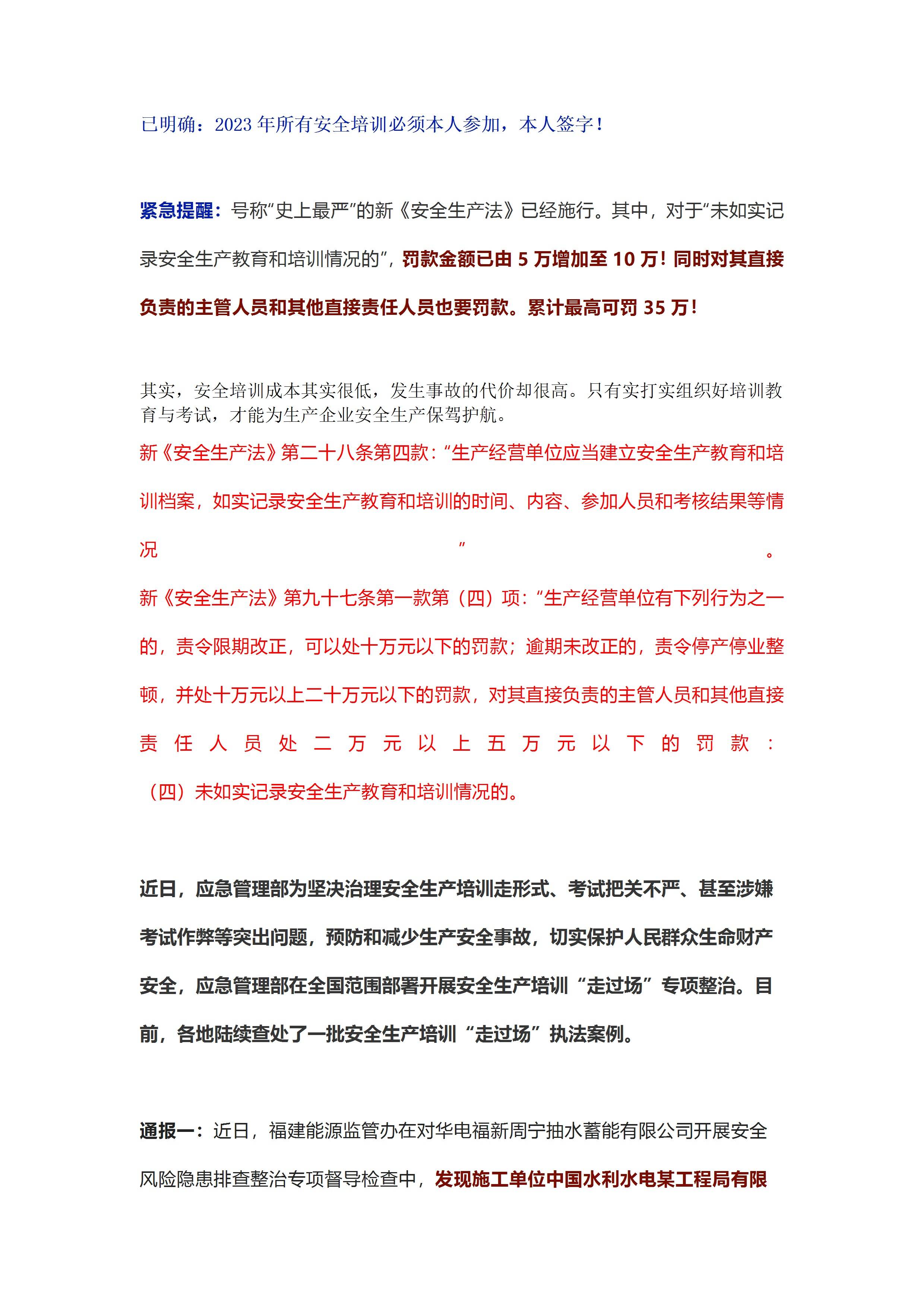 检查组最新通报2023所有安全培训必须本人参加,本人签字