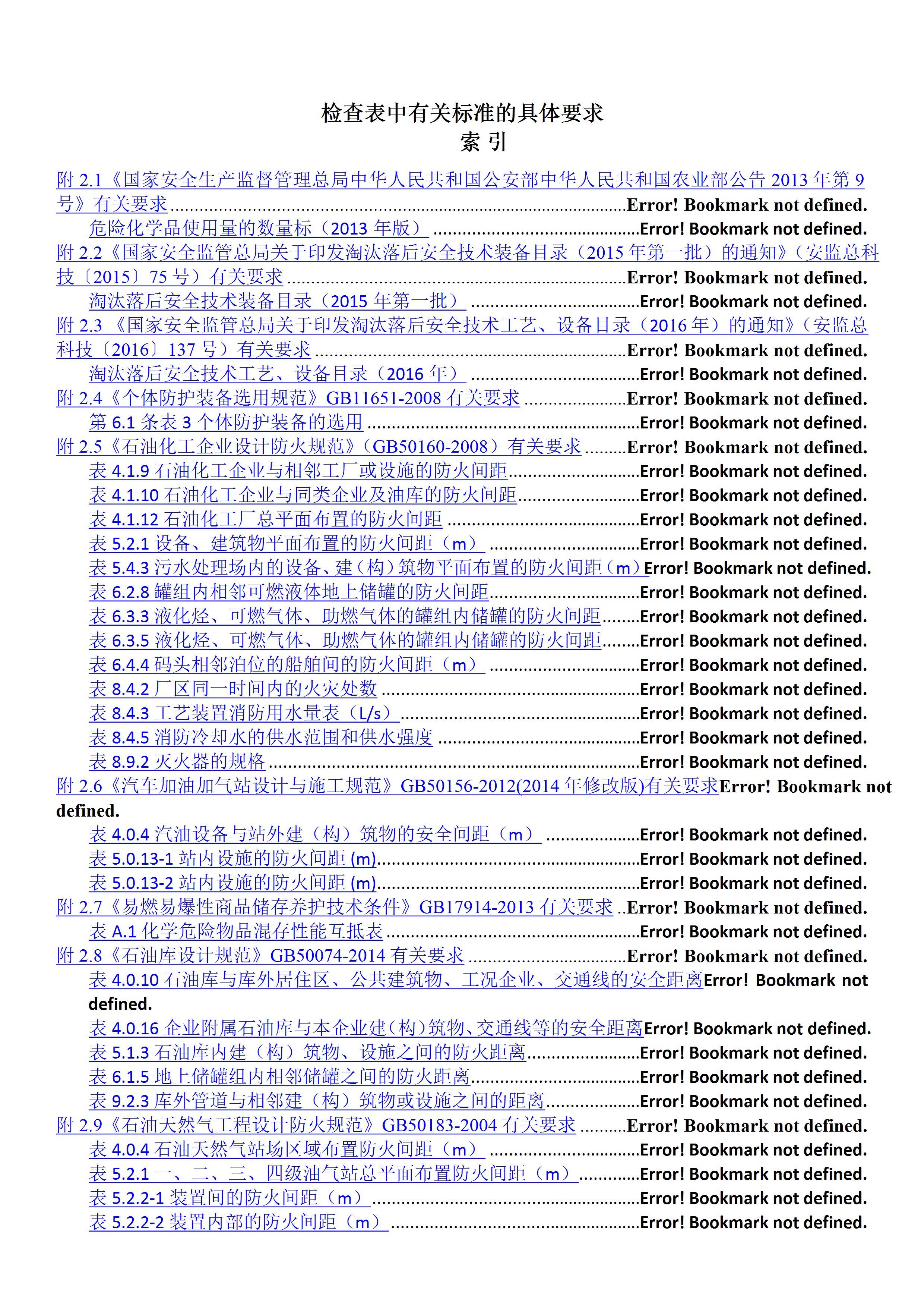 / 检查表中有关标准的具体要求
