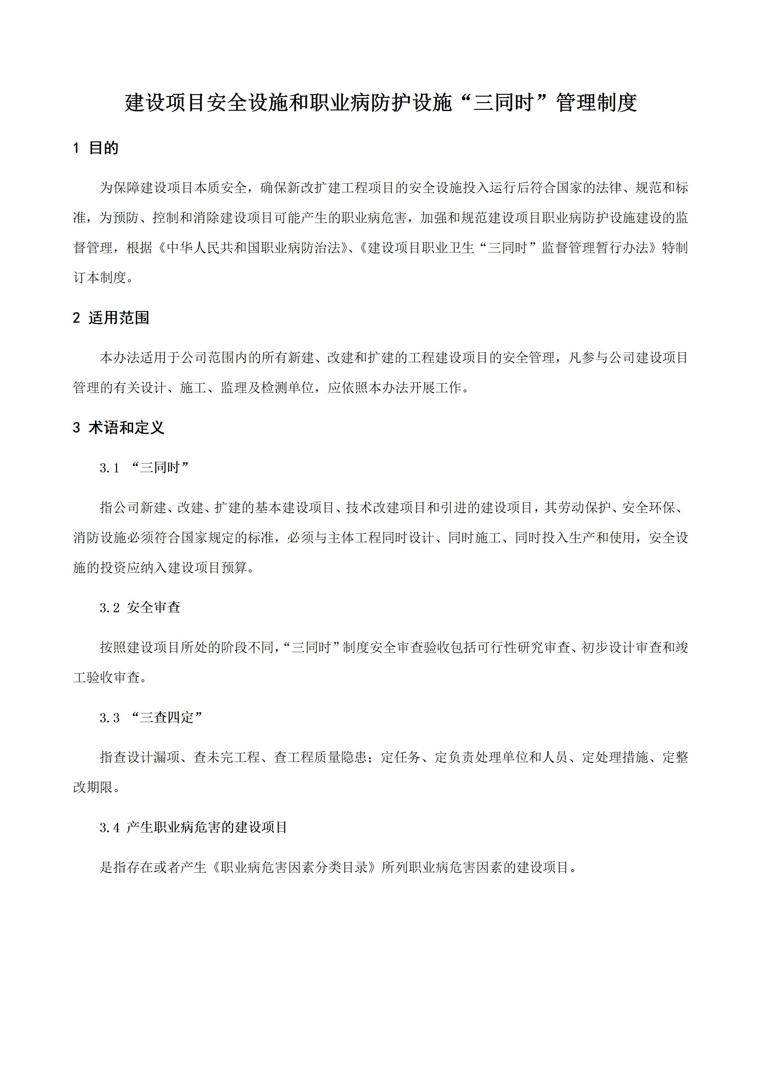 建设项目安全设施和职业病防护设施“三同时”管理制度