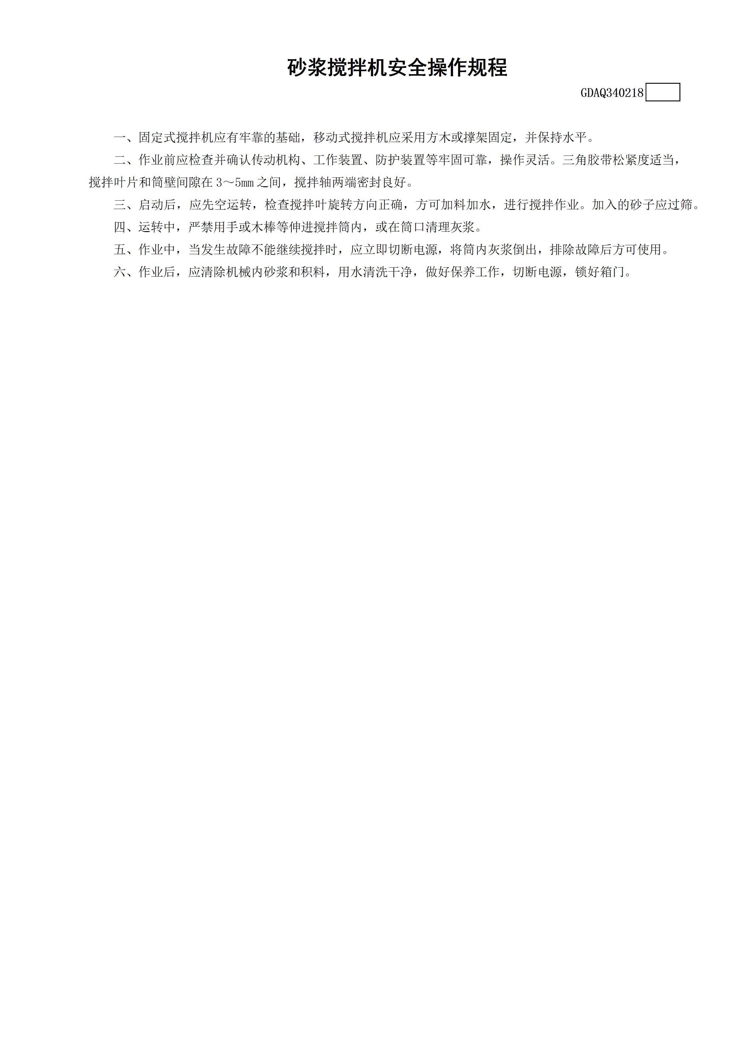 / 砂浆搅拌机安全操作规程GDAQ340218[文档]
