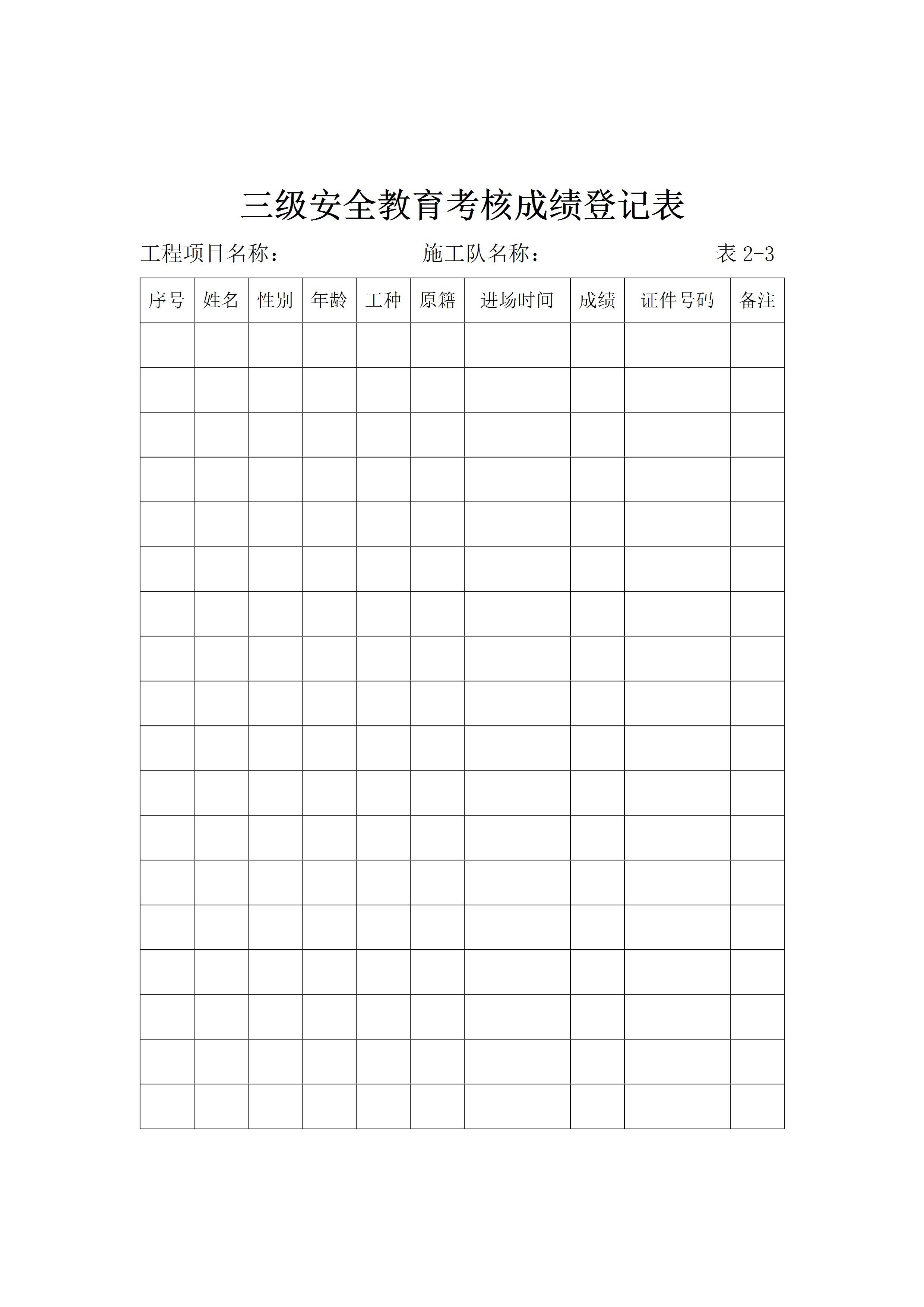 三级安全教育考核成绩登记表[文档]