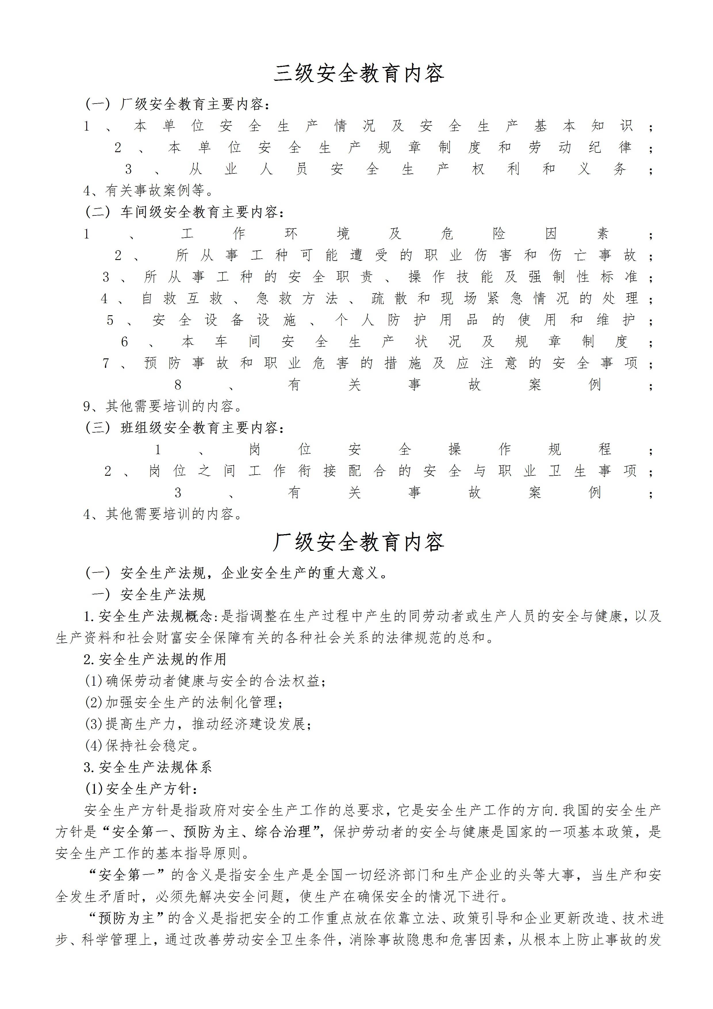 / 三级安全教育厂级教育内容[文档]