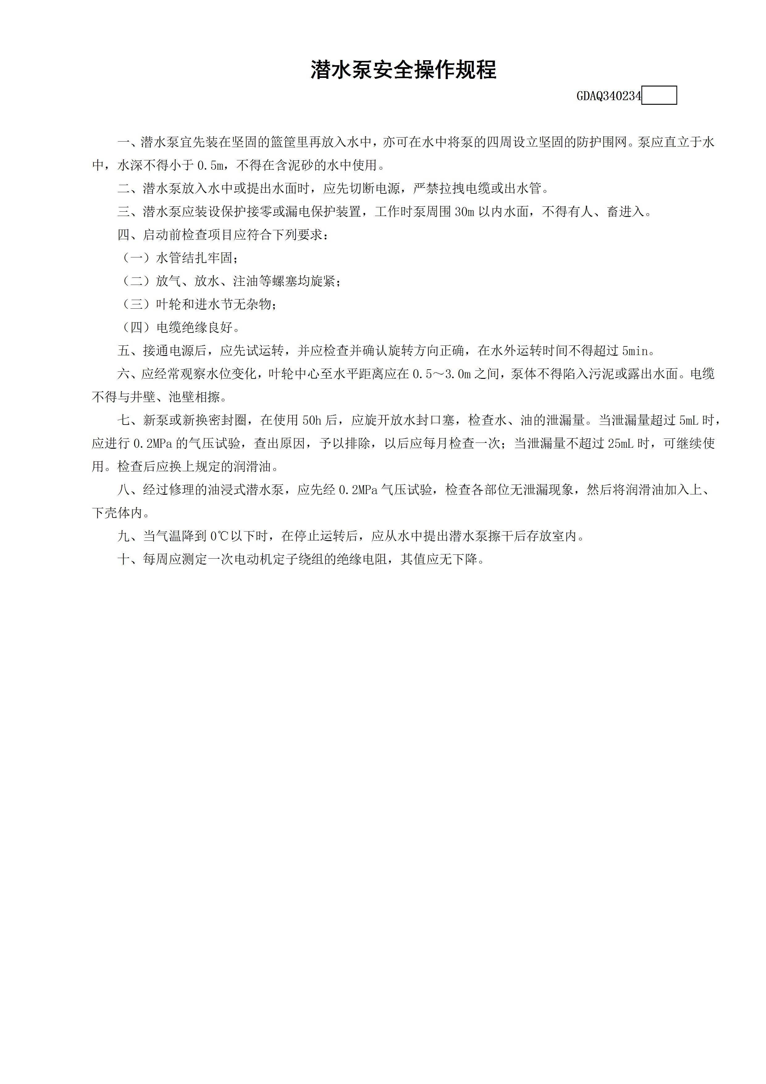 / 潜水泵安全操作规程GDAQ340234[文档]
