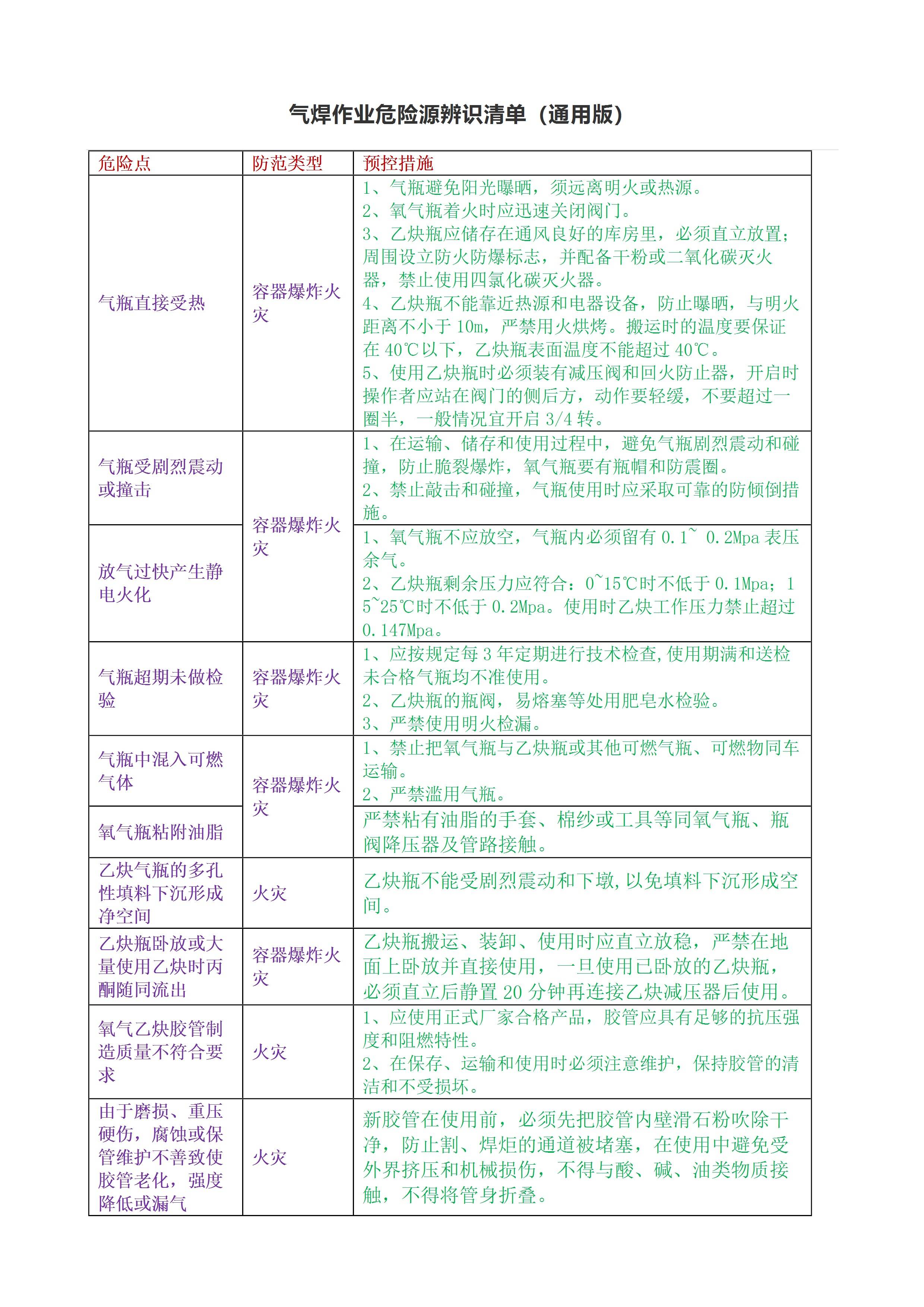 / 气焊作业危险源辨识清单(通用版)[文档]
