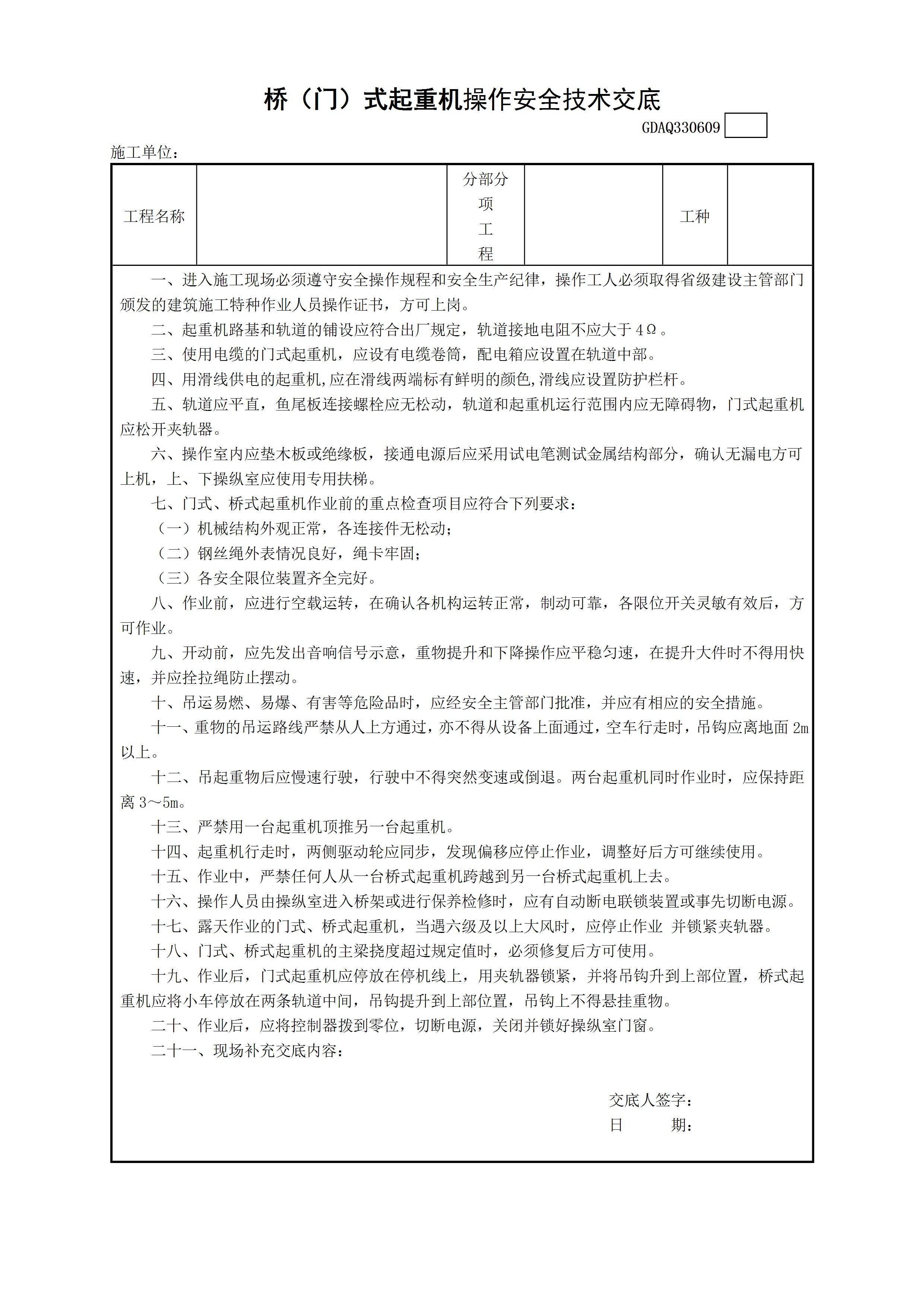 / 桥(门)式起重机操作安全技术交底GDAQ330609[文档]