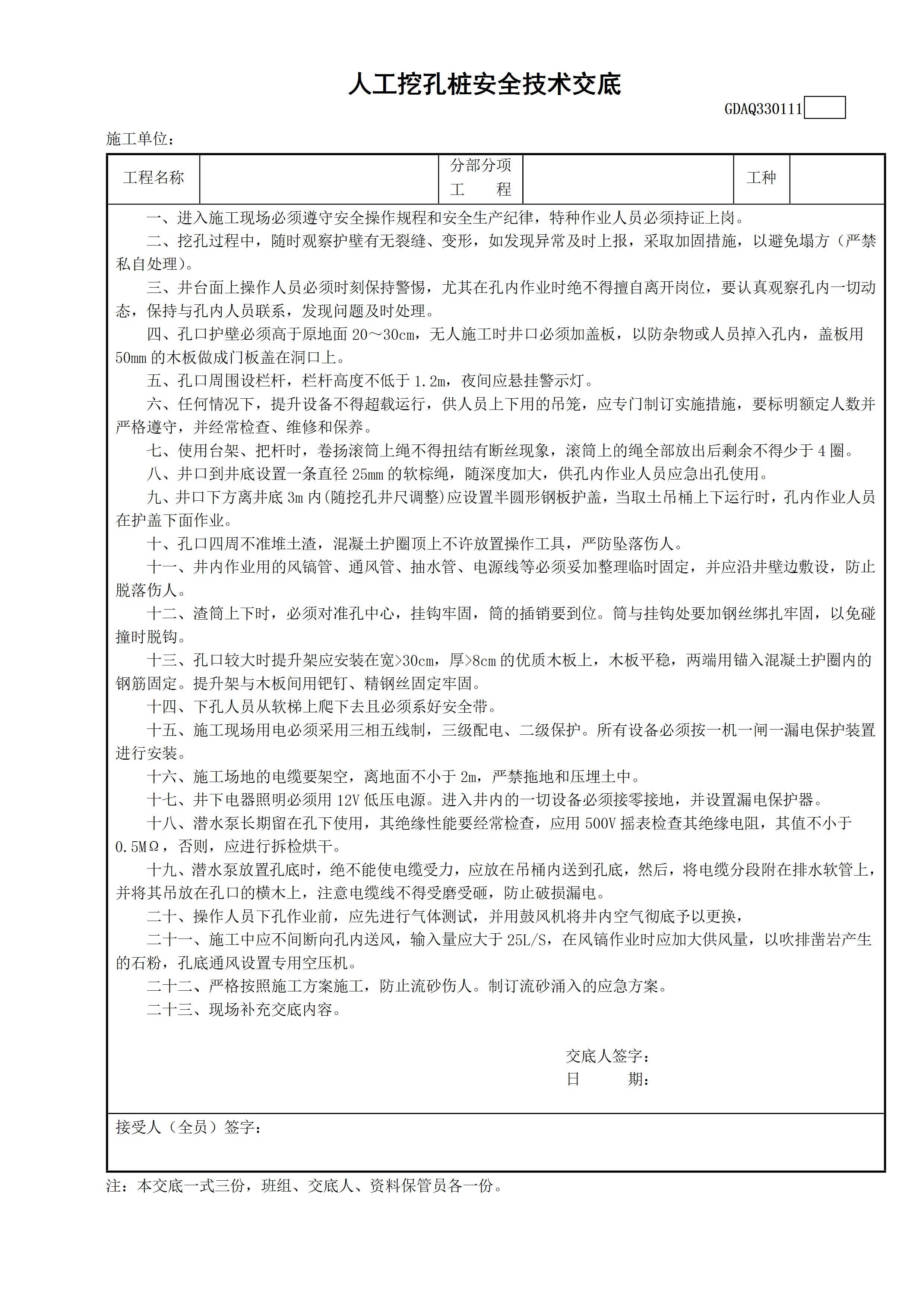/ 人工挖孔桩安全技术交底GDAQ330111[文档]
