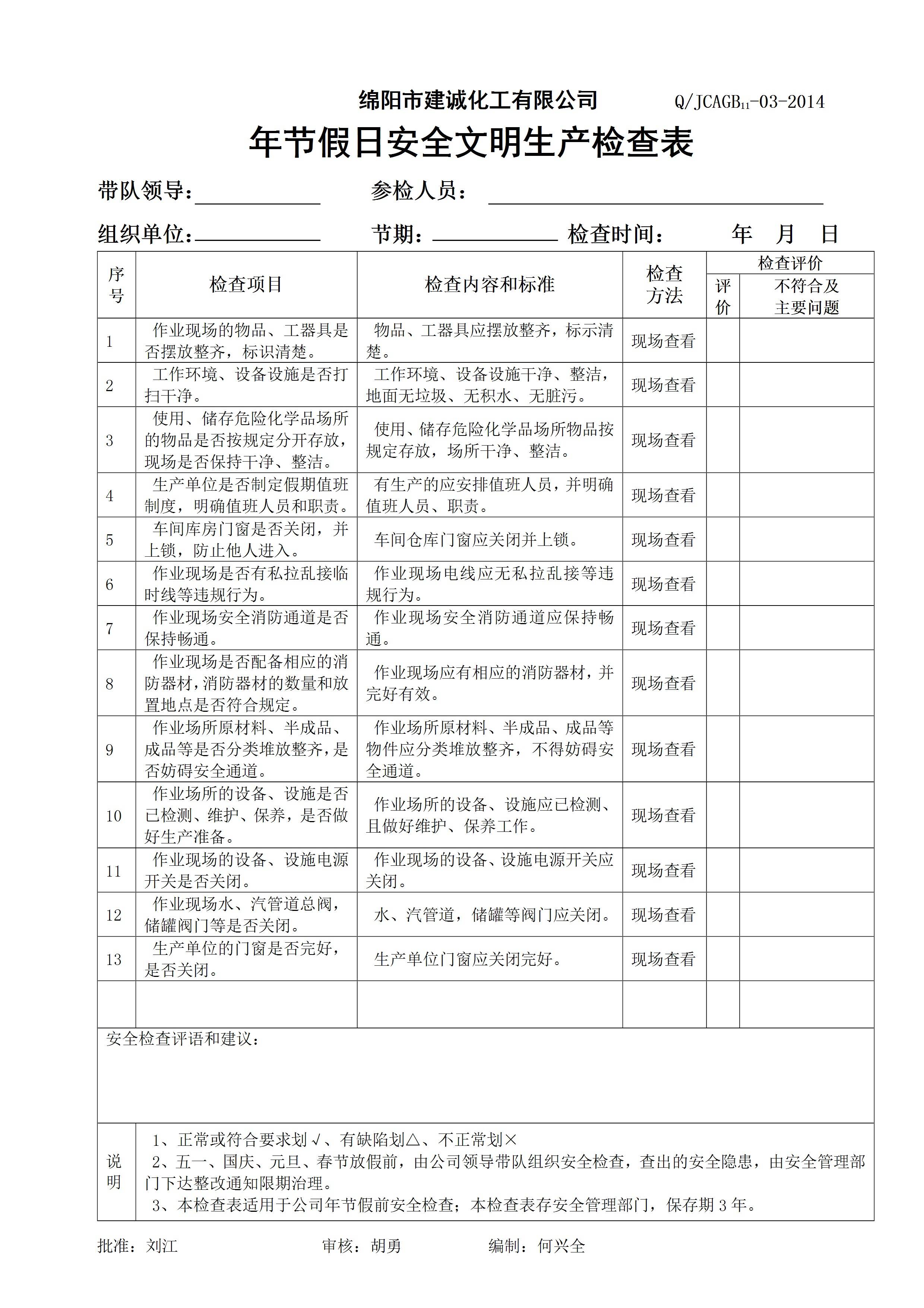 / 年节假日安全检查表[文档]
