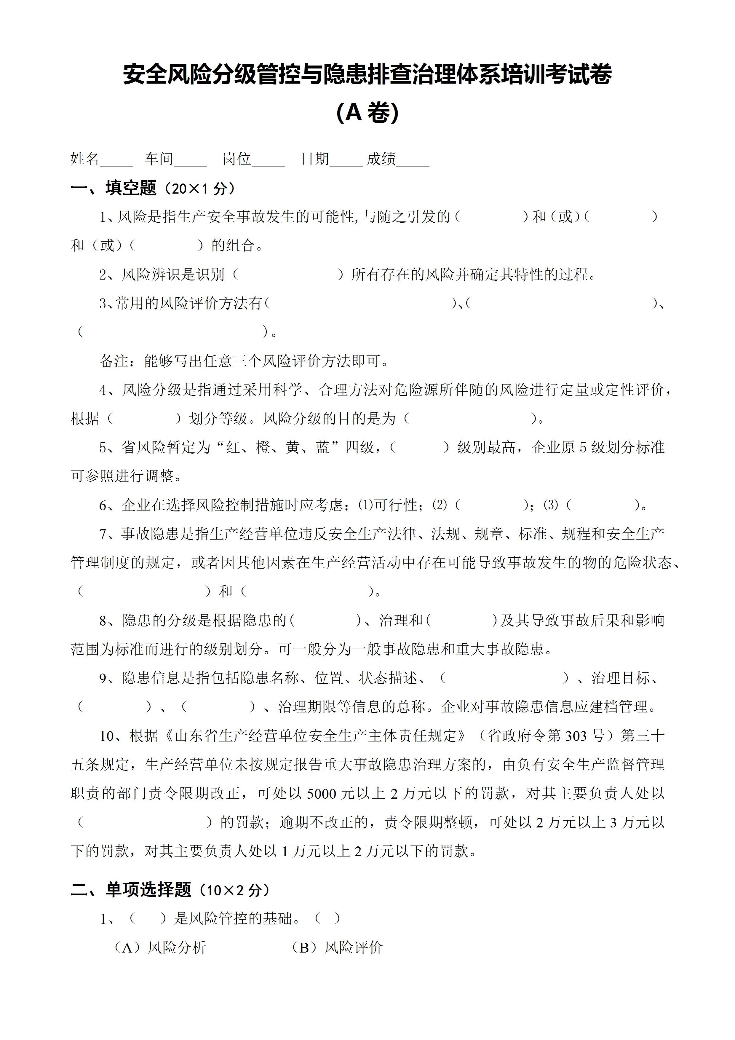 培训考试卷ABCD四套与答案[文档]