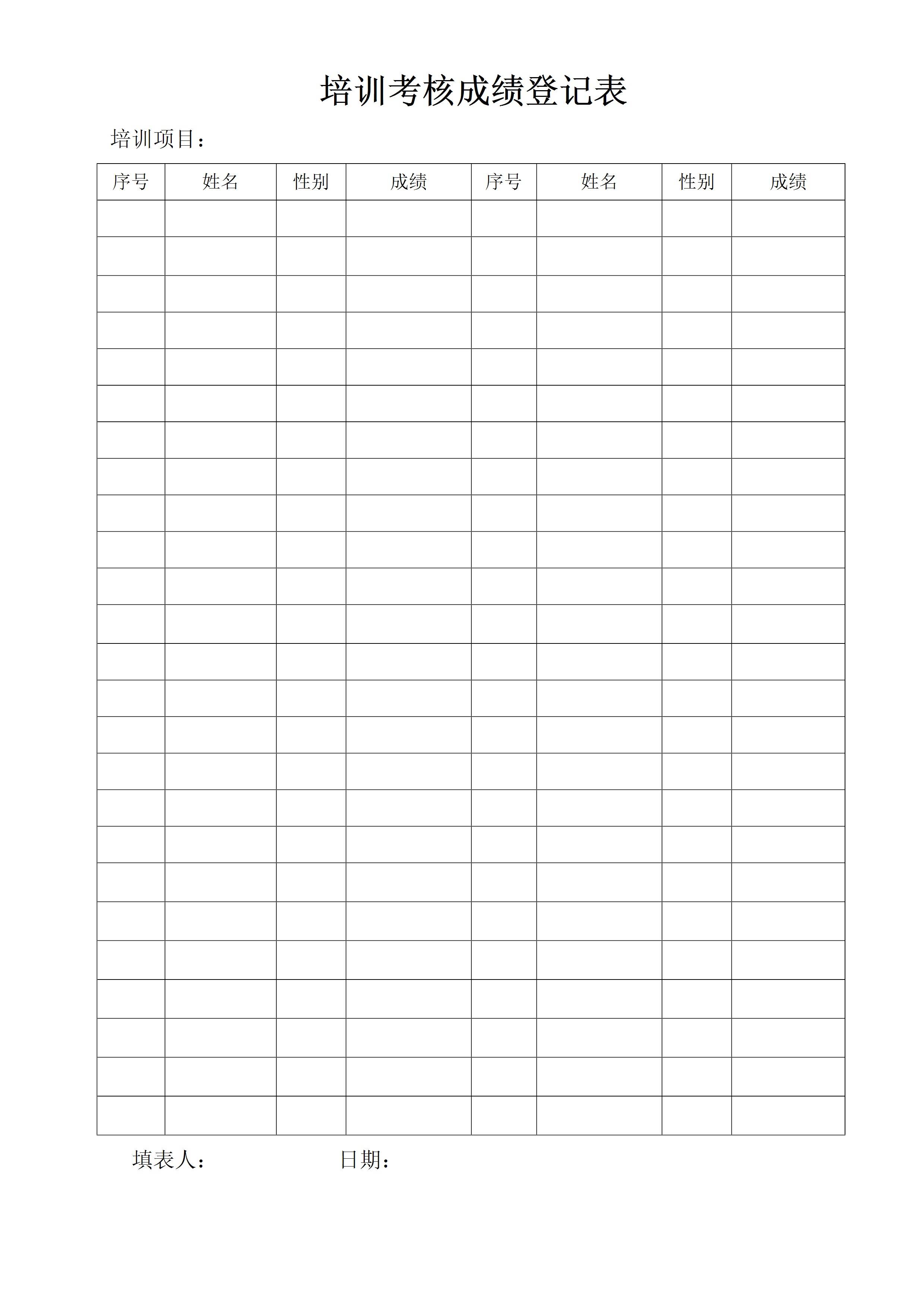 / 培训考核成绩登记表[文档]