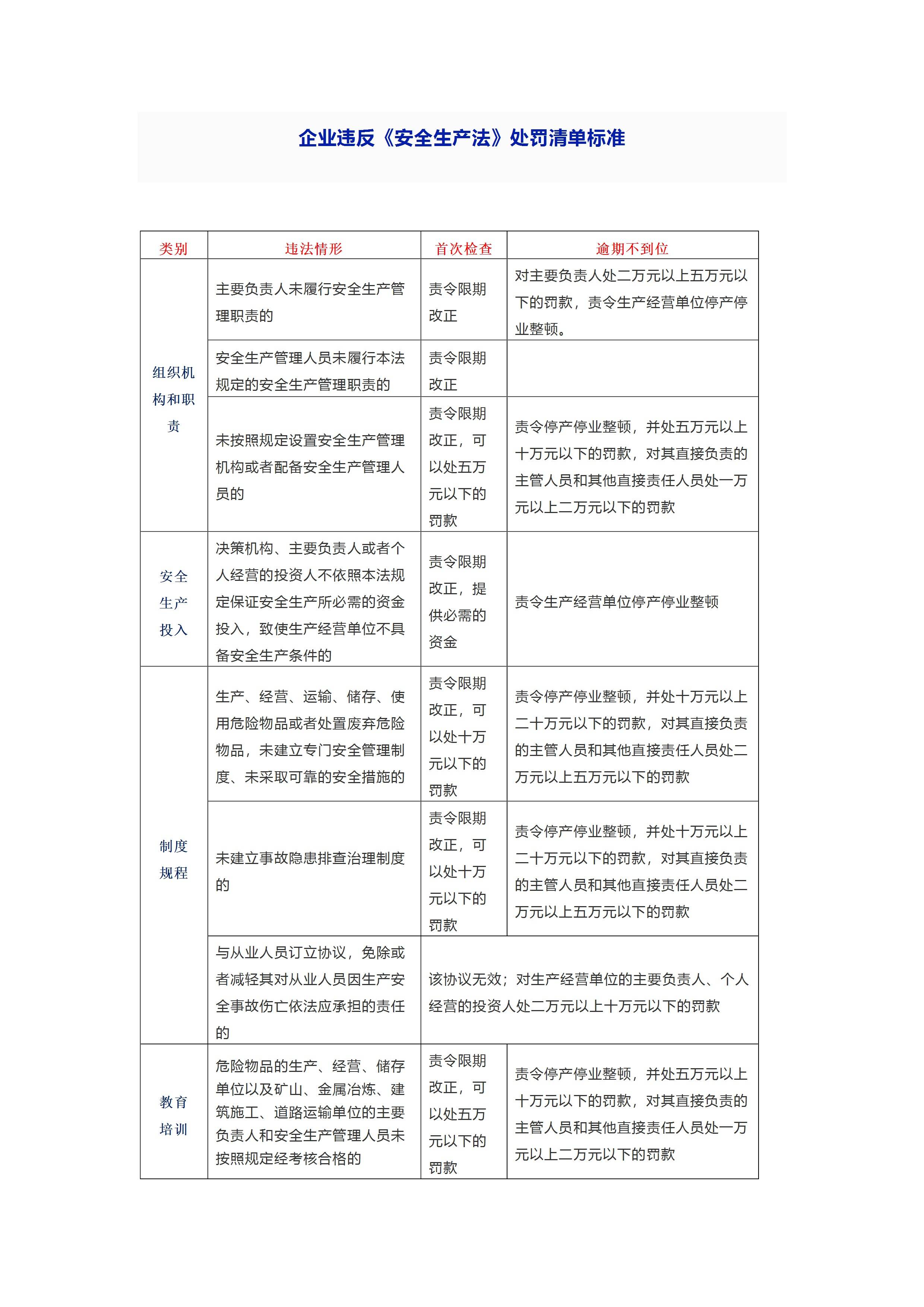 / 企业违反《安全生产法》处罚清单标准[文档]