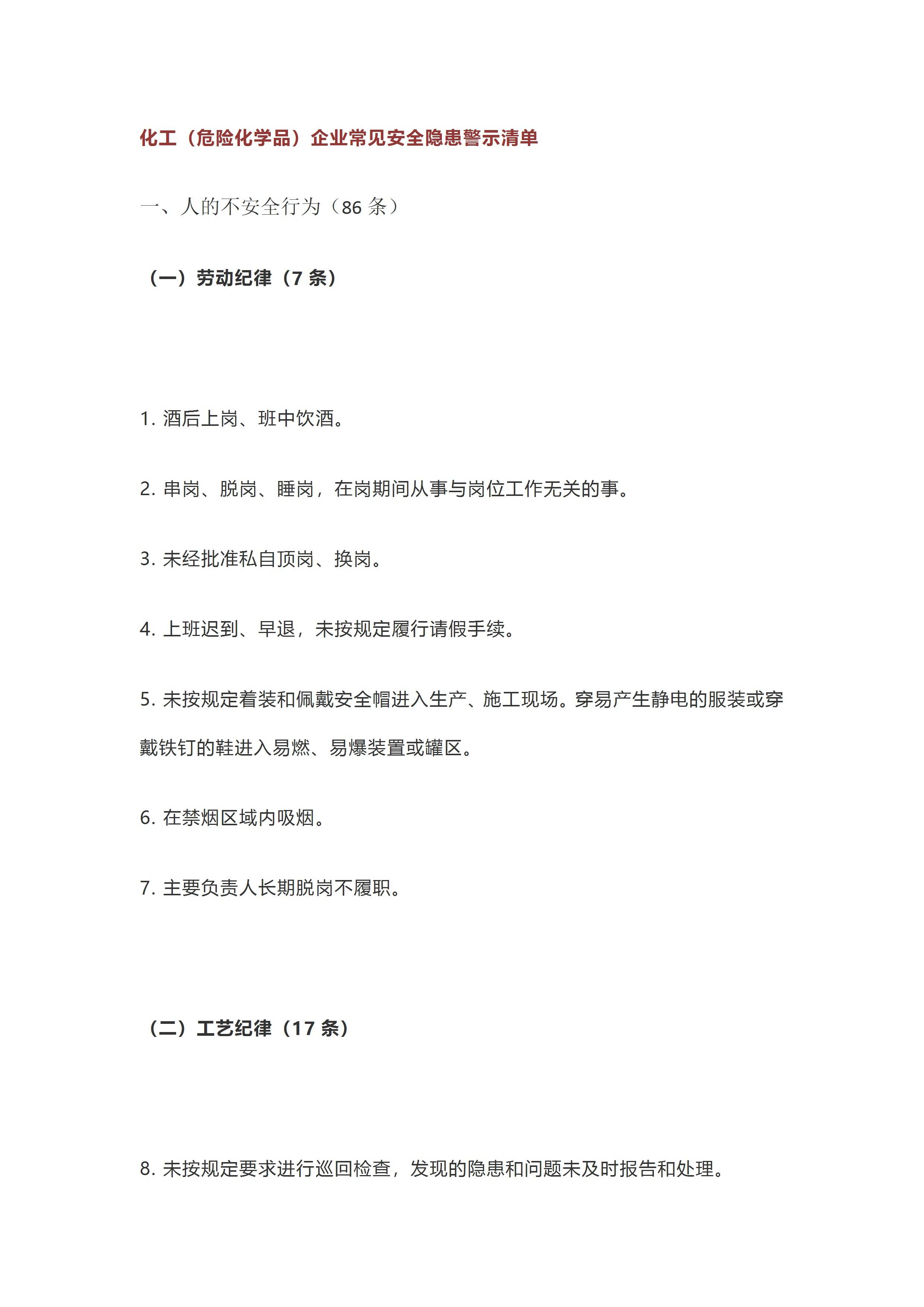 / 企业常见隐患清单及重大事故隐患判定标准[文档]