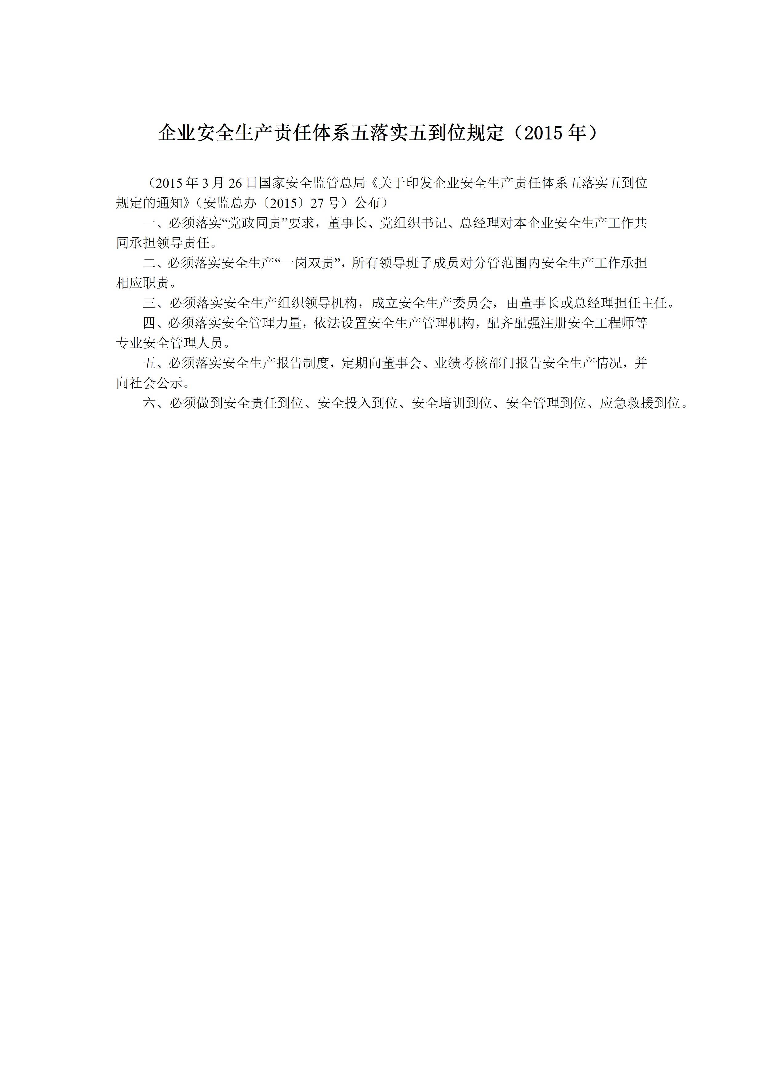 / 企业安全生产责任体系五落实五到位规定(2015年)[文档]