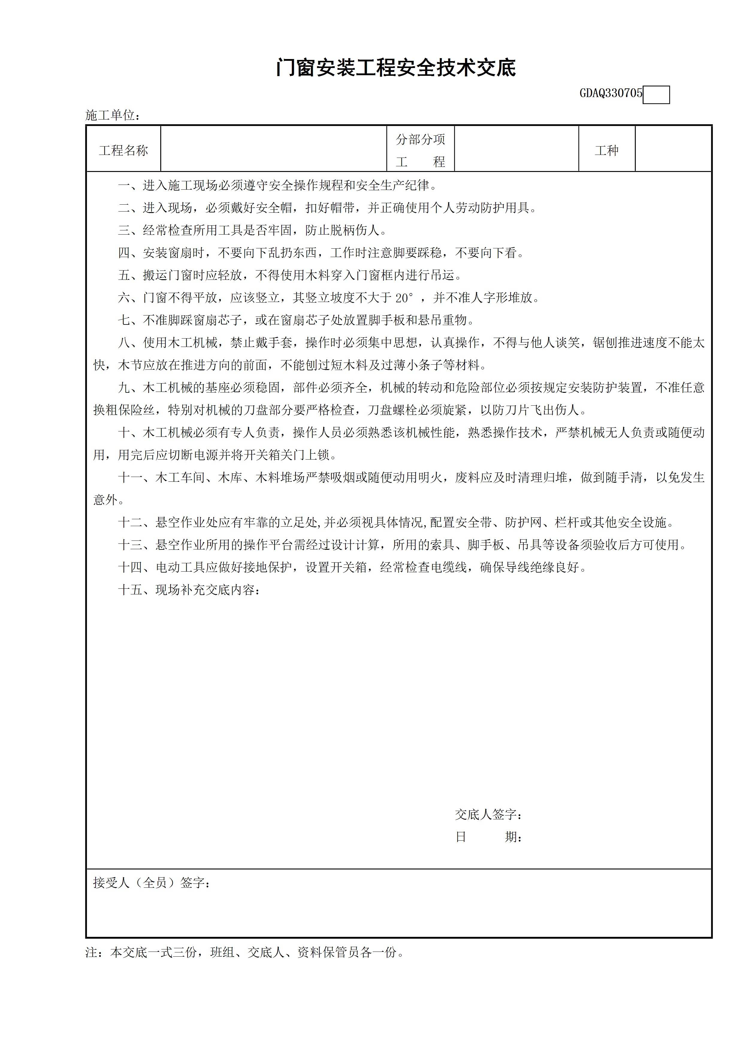 / 门窗安装工程安全技术交底GDAQ330705[文档]