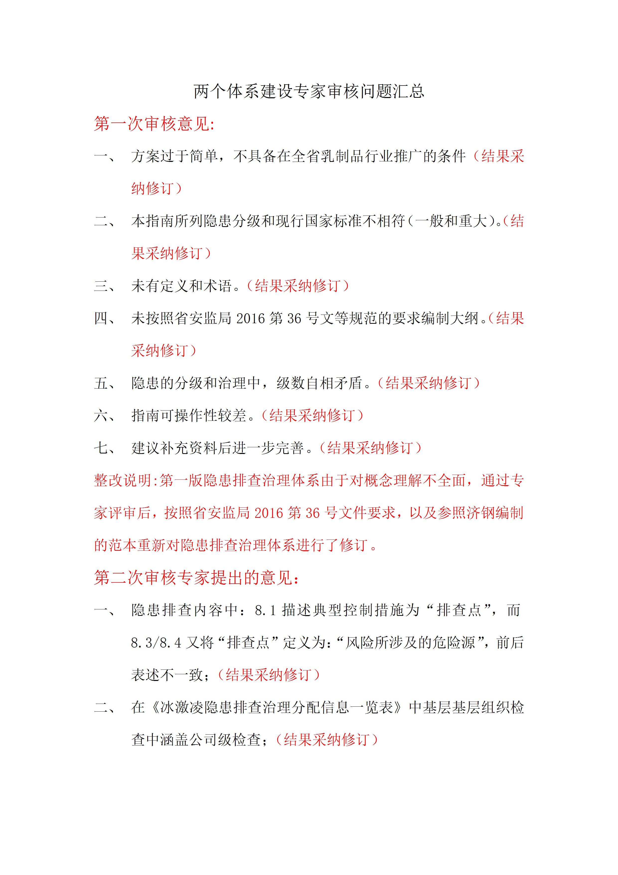 / 蒙牛乳业泰安有限责任公司隐患排查治理体系专家意见汇总[文档]