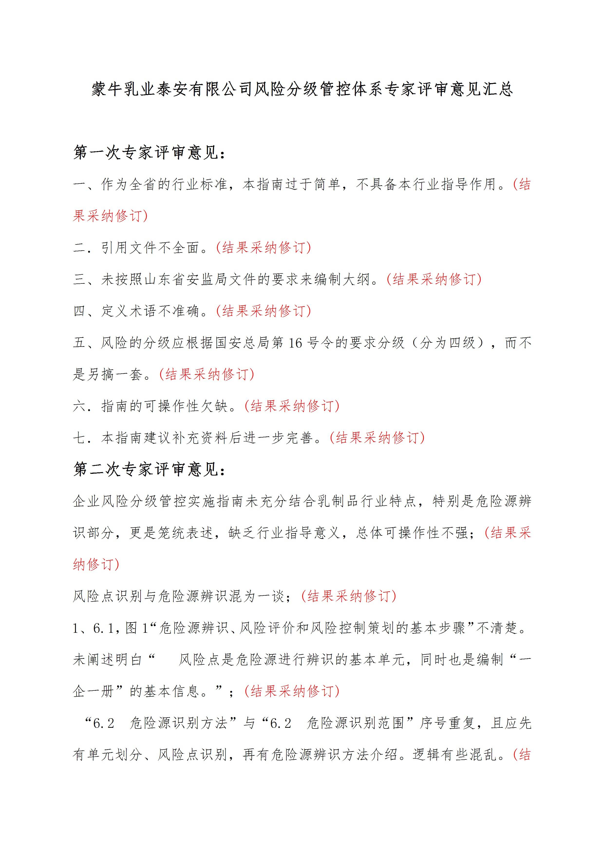 / 蒙牛乳业泰安有限公司风险分级管控专家评审意见汇总2[文档]