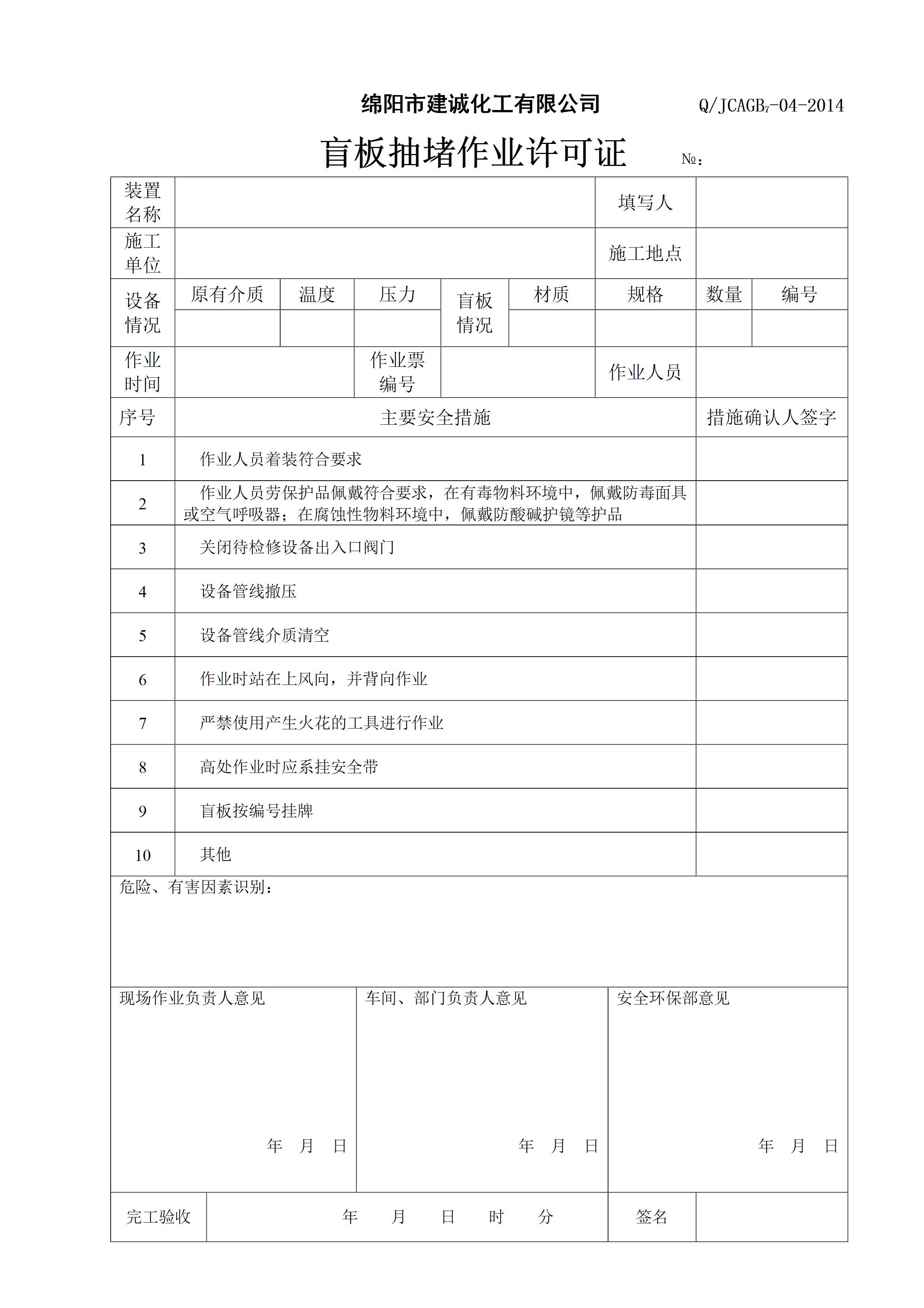 盲板抽堵作业许可证[文档]