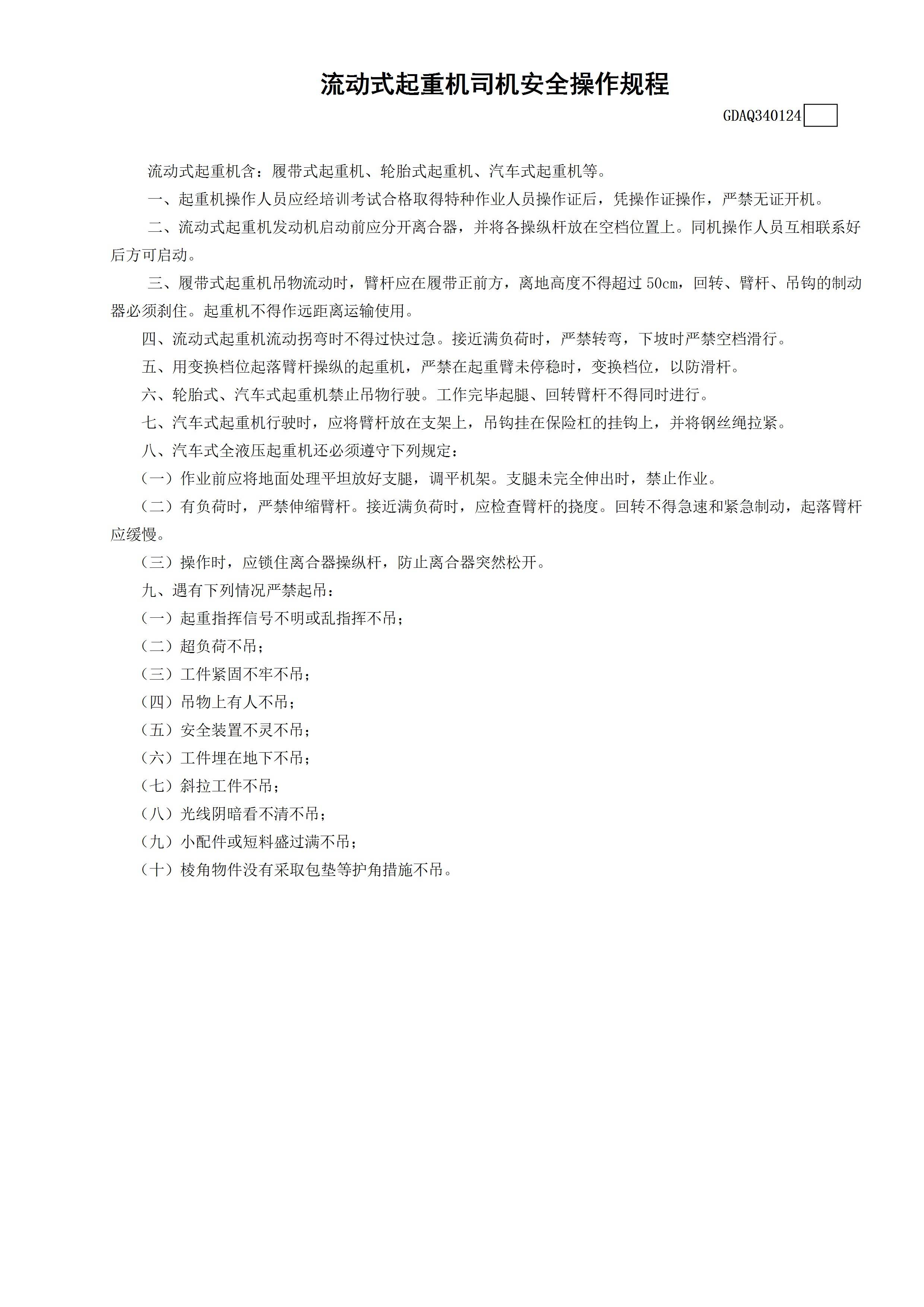 / 流动式起重机司机安全操作规程GDAQ340124[文档]