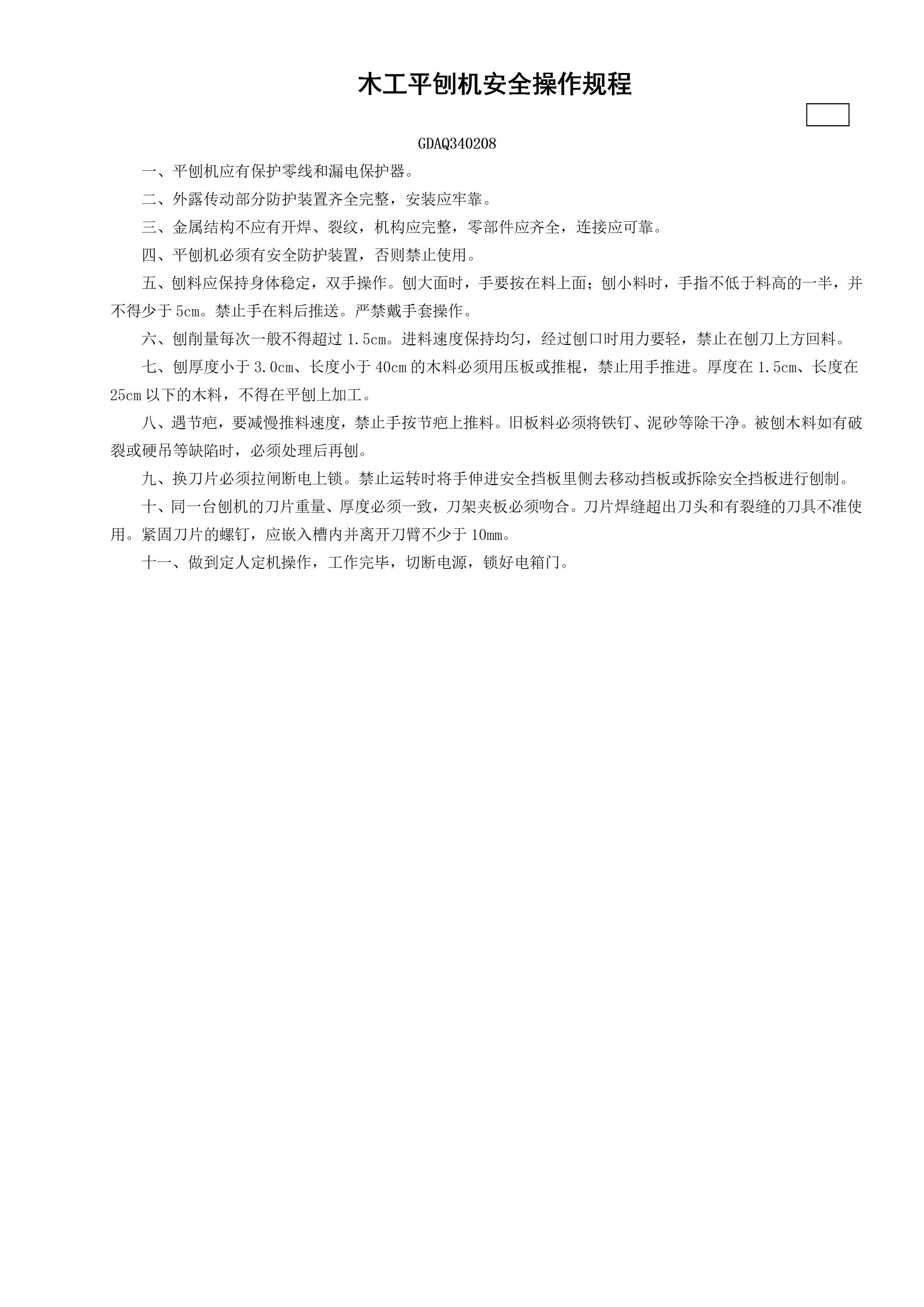 / 木工平刨机安全操作规程GDAQ340208[文档]