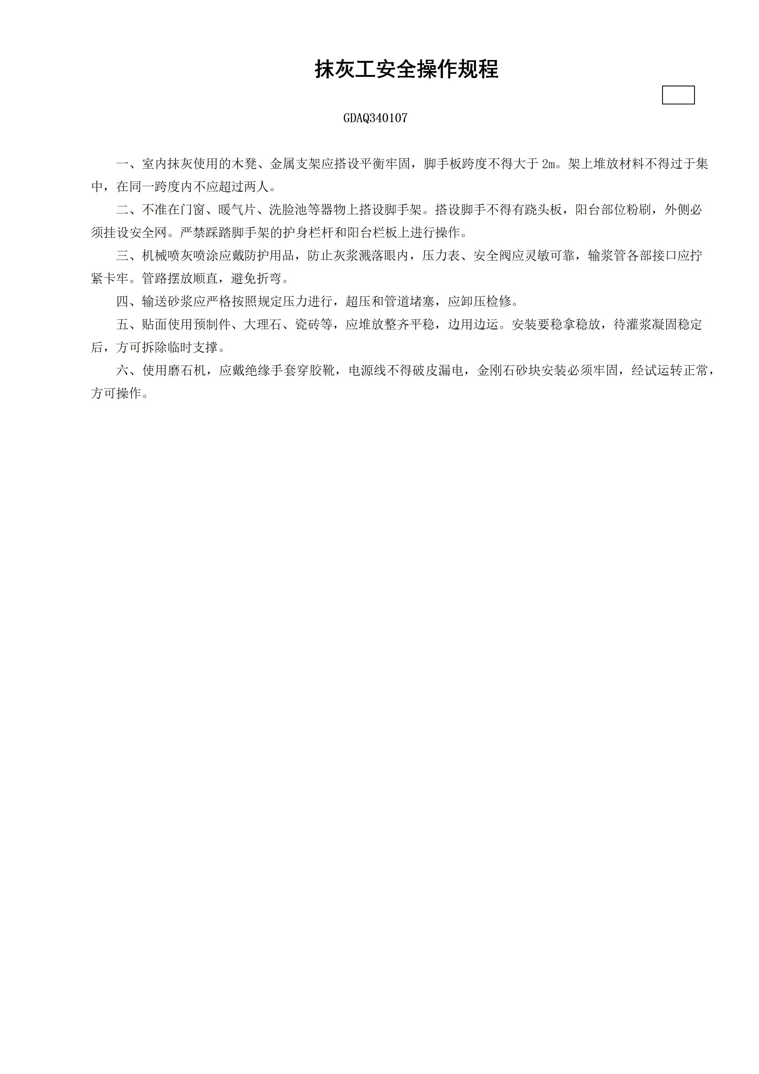 / 抹灰工安全操作规程GDAQ340107[文档]