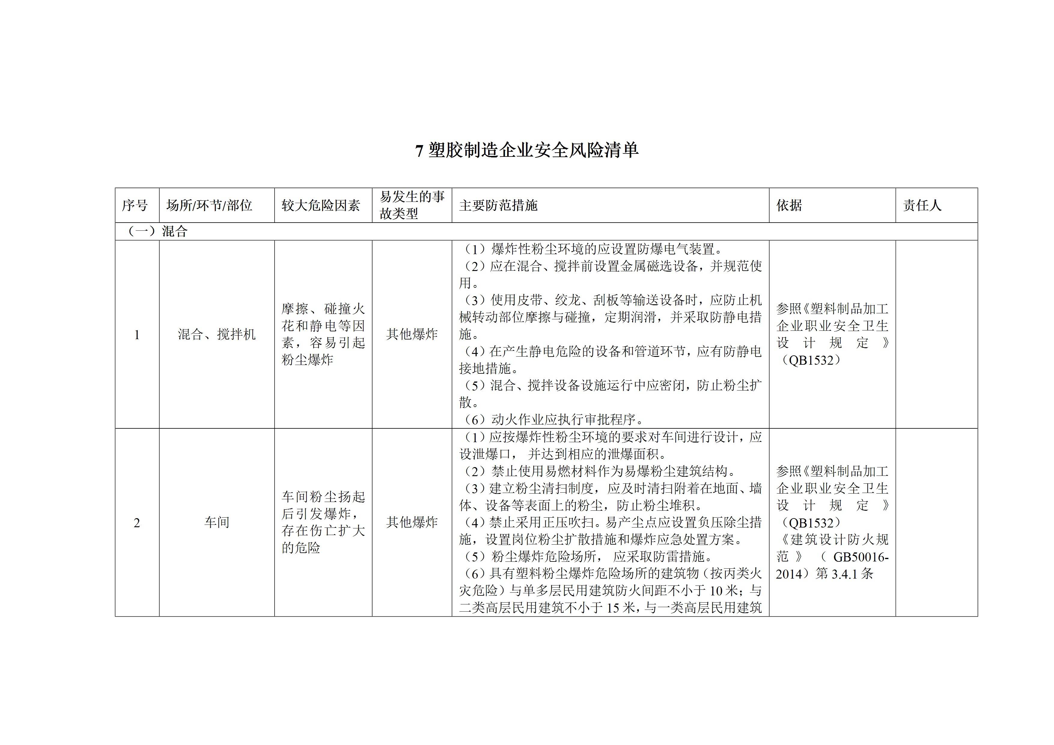 / 塑胶制造企业安全风险辨识分级管控清单[文档]