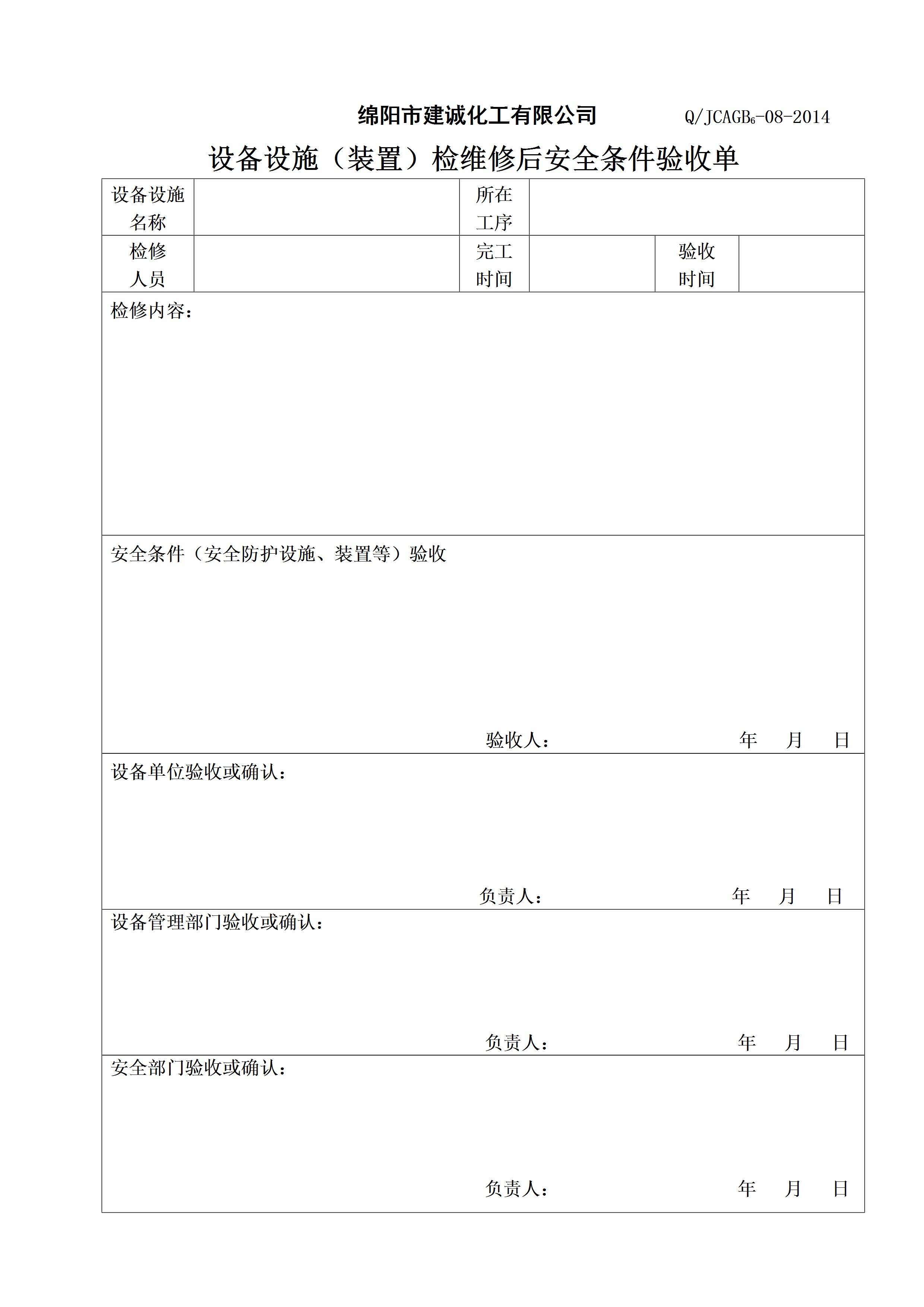 / 设备设施(装置)检维修后安全条件验收单[文档]