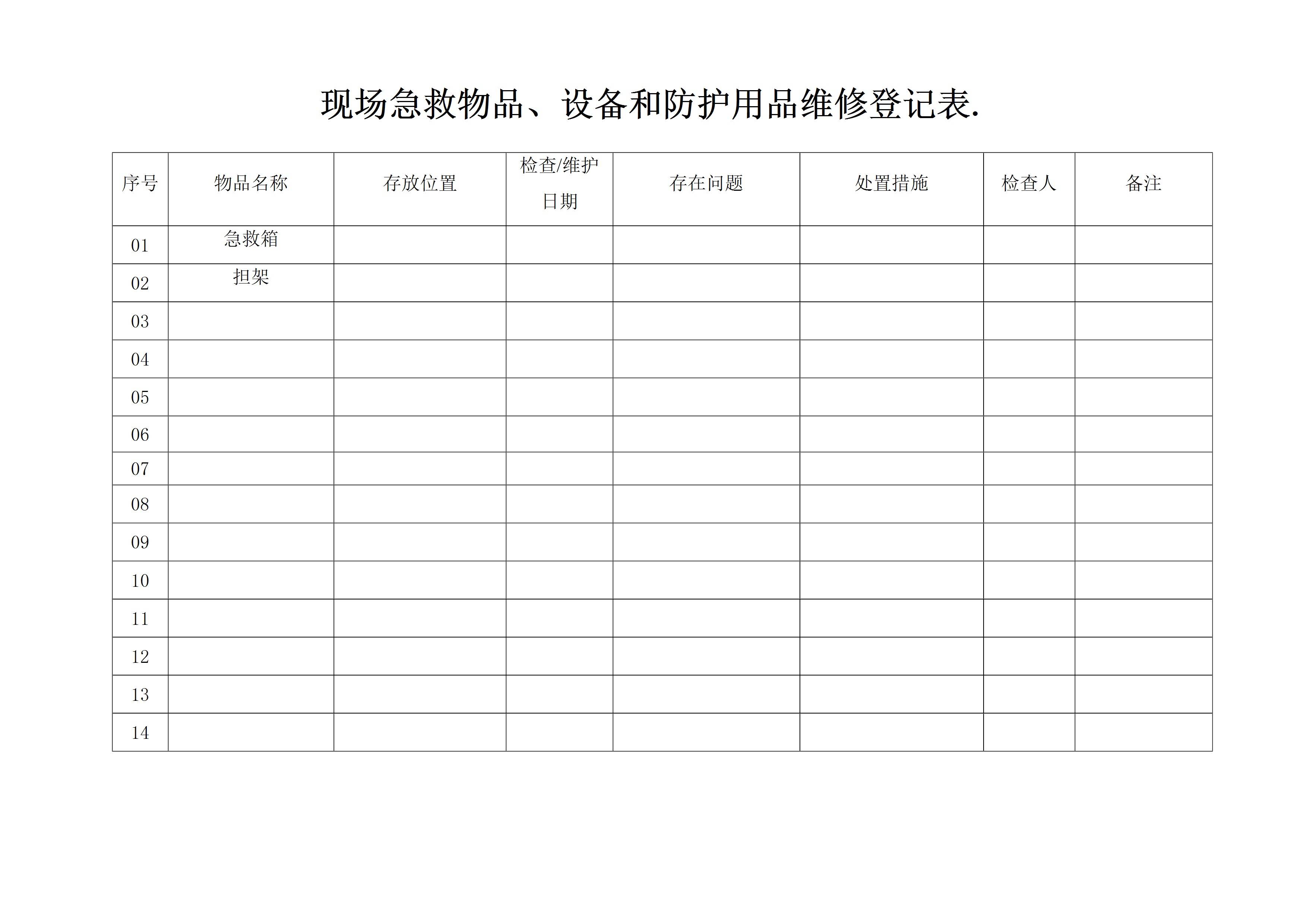 / 现场急救物品设备和防护用品维修登记表[文档]