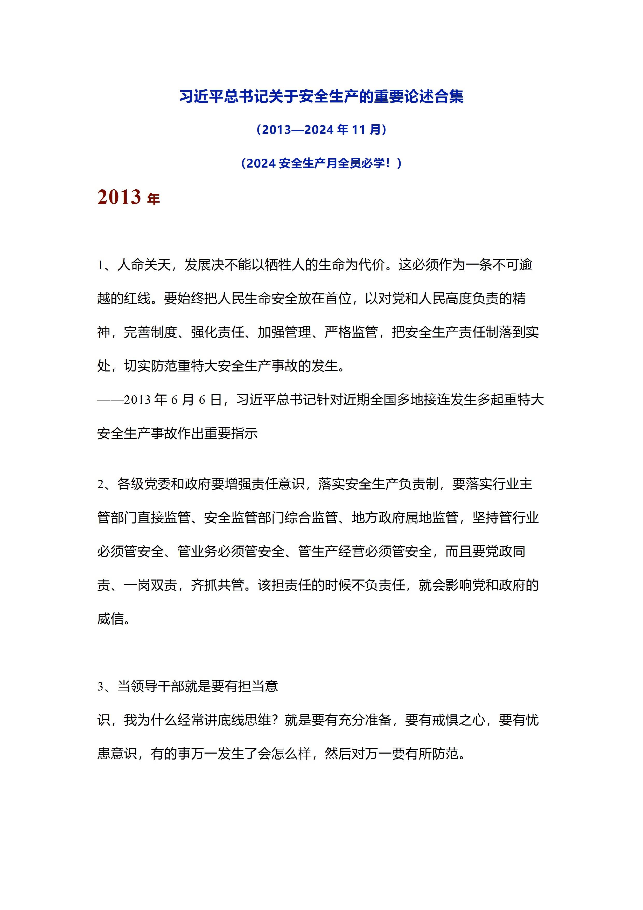 习近平总书记关于安全生产重要论述和重要指示批示精神(2024最新版)[文档]