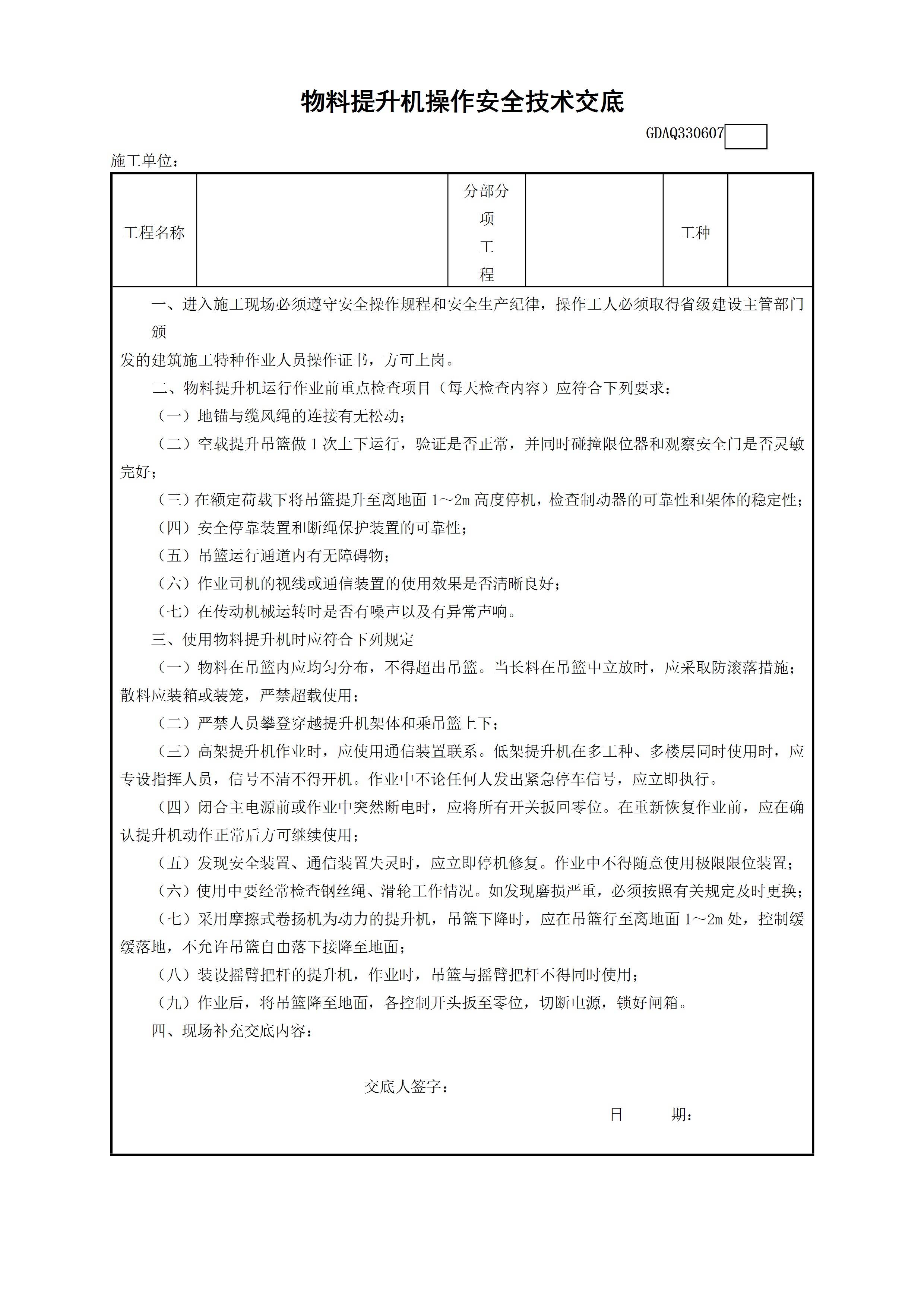 / 物料提升机操作安全技术交底GDAQ330607[文档]