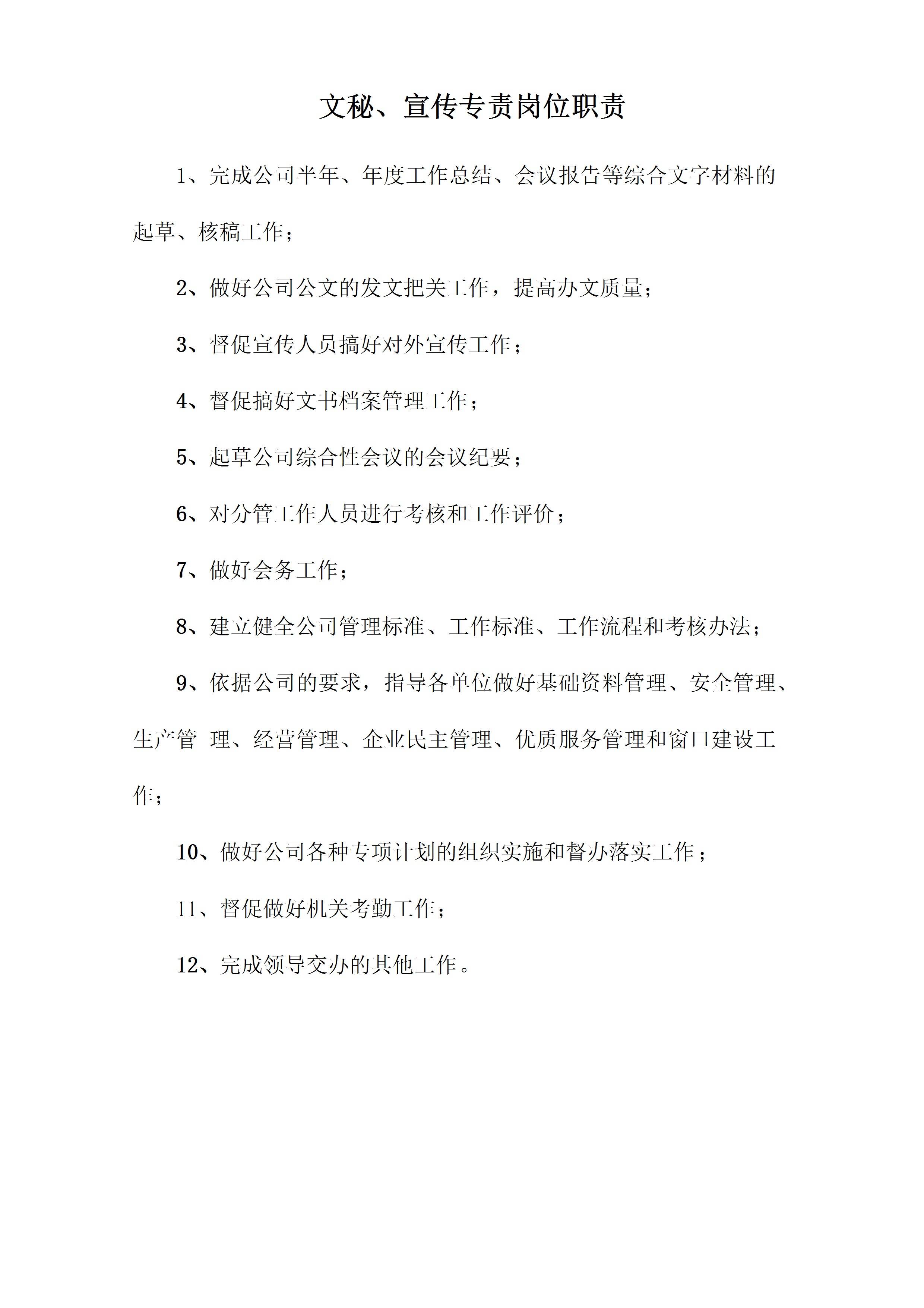 文秘,宣传专责岗位职责[文档]
