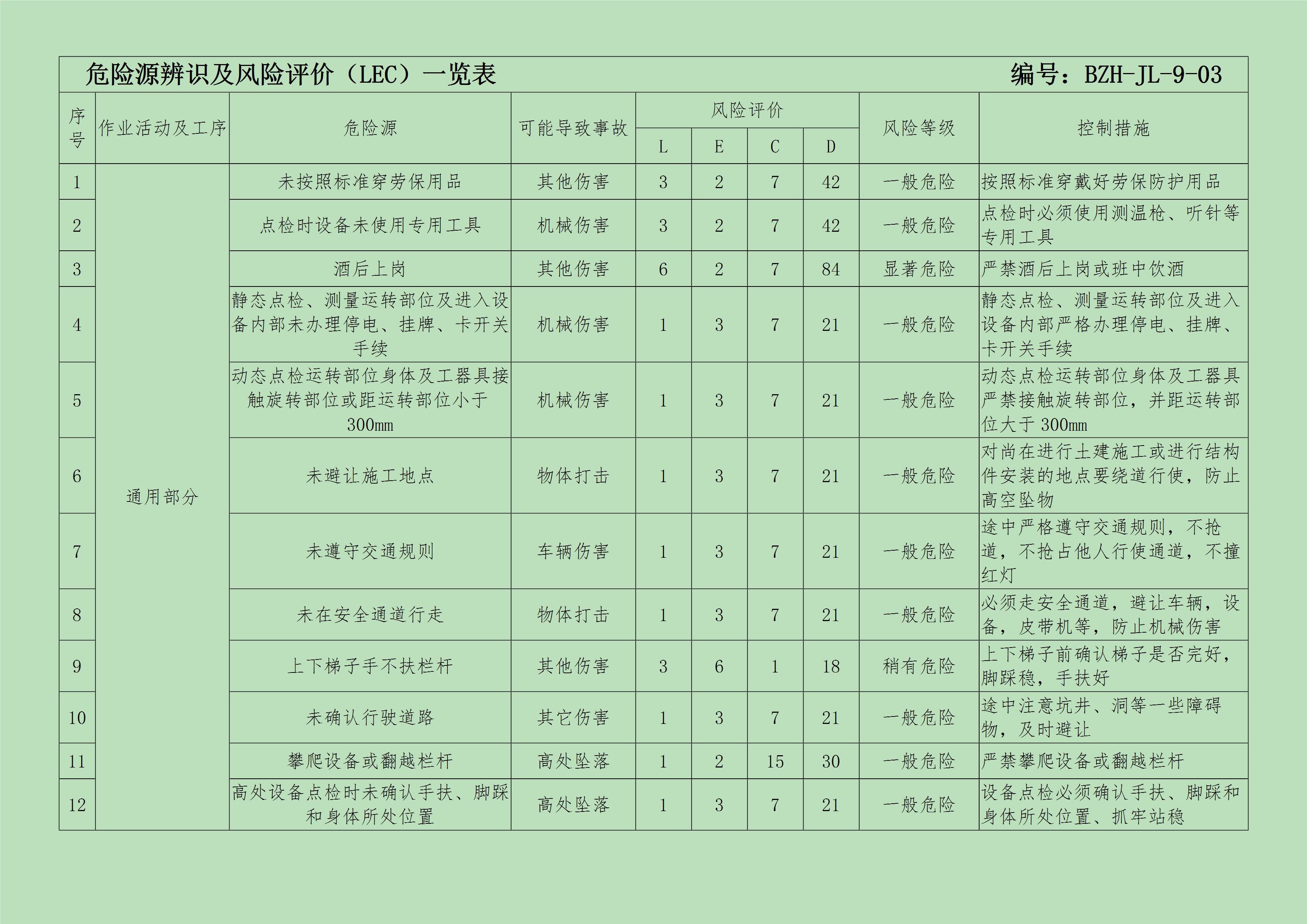 危险源辨识及分析评价(lec)一览表(参考)[文档]