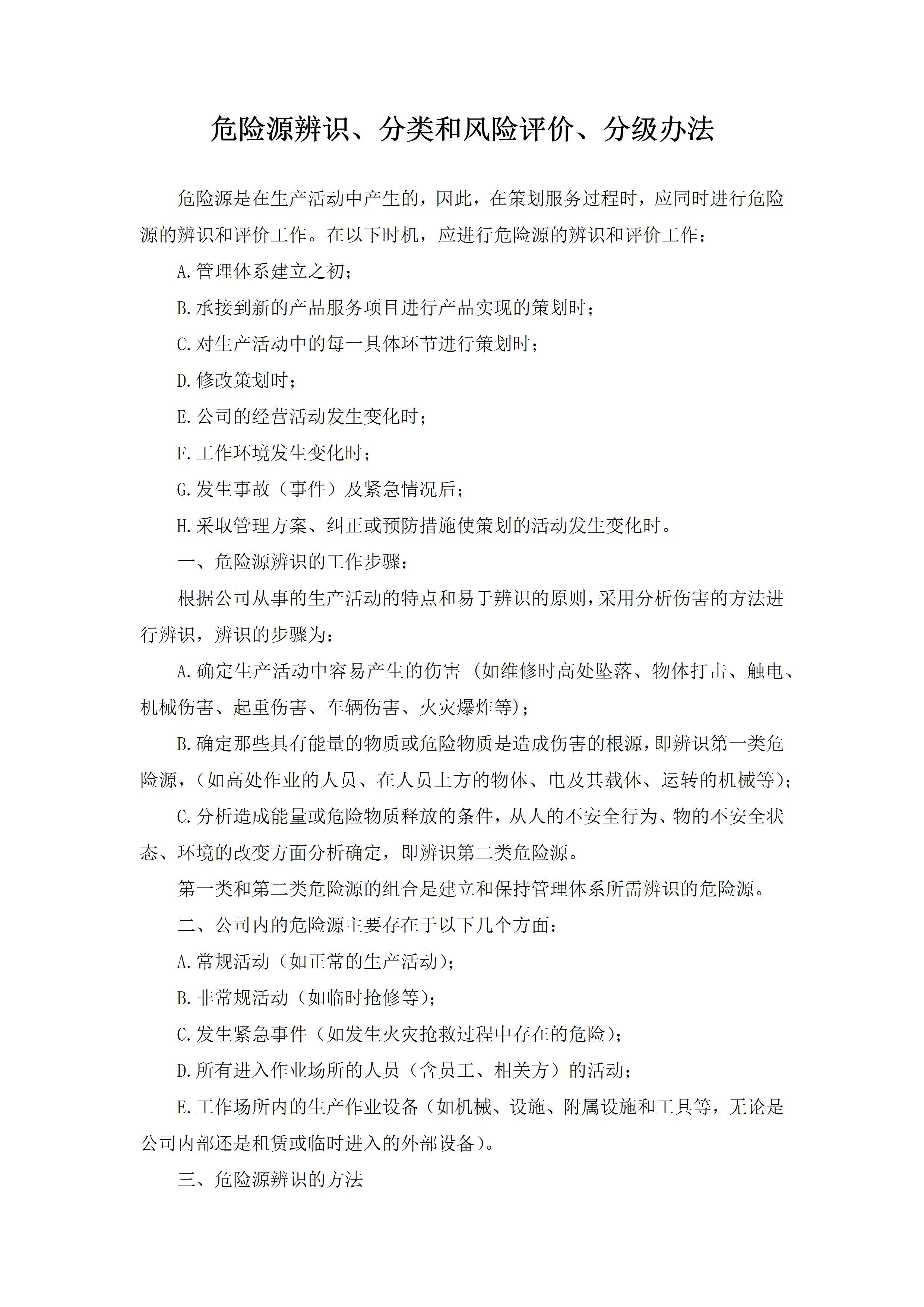 / 危险源辨识分类和风险评价分级办法[文档]