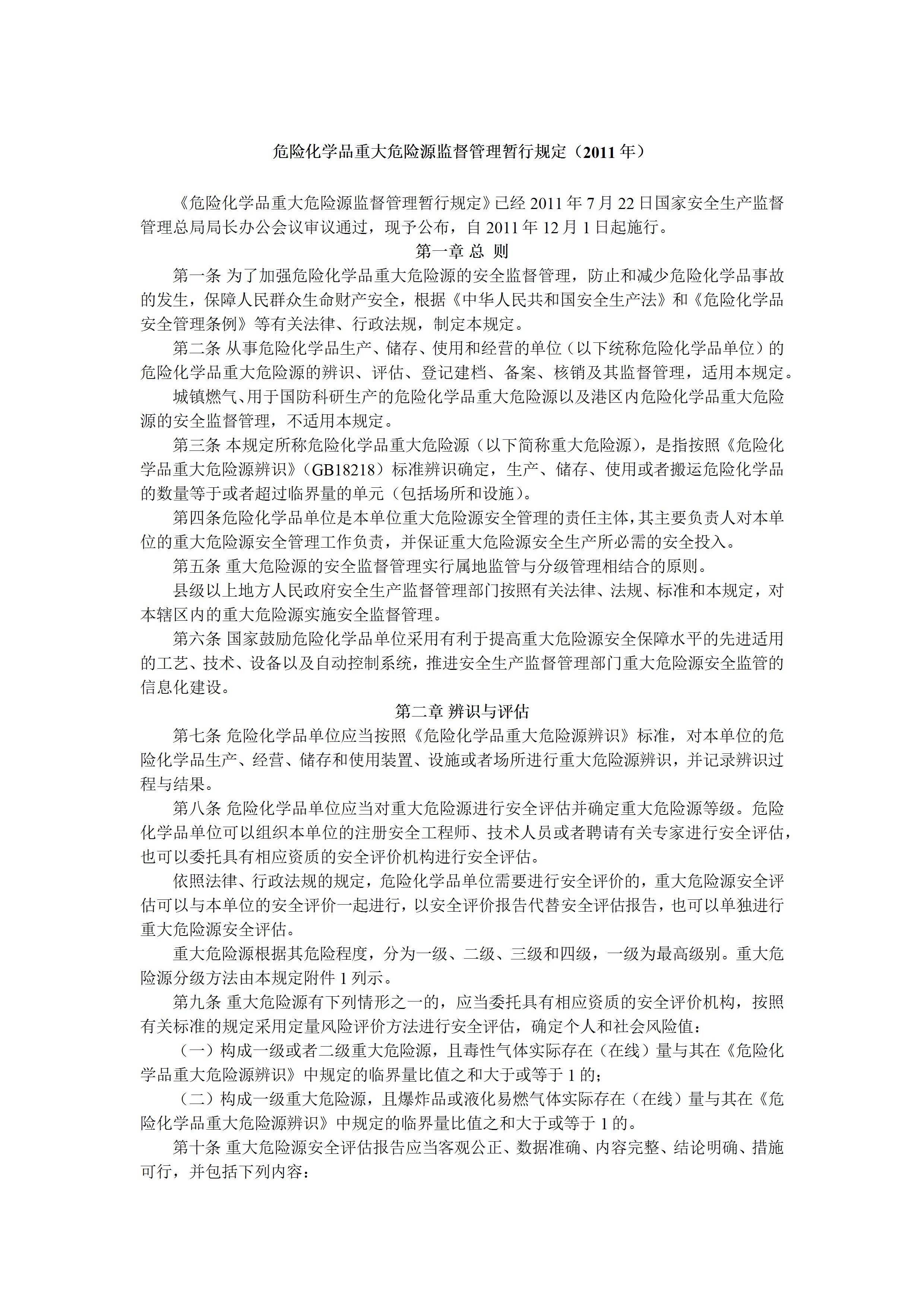 危险化学品重大危险源监督管理暂行规定(2011年)[文档]
