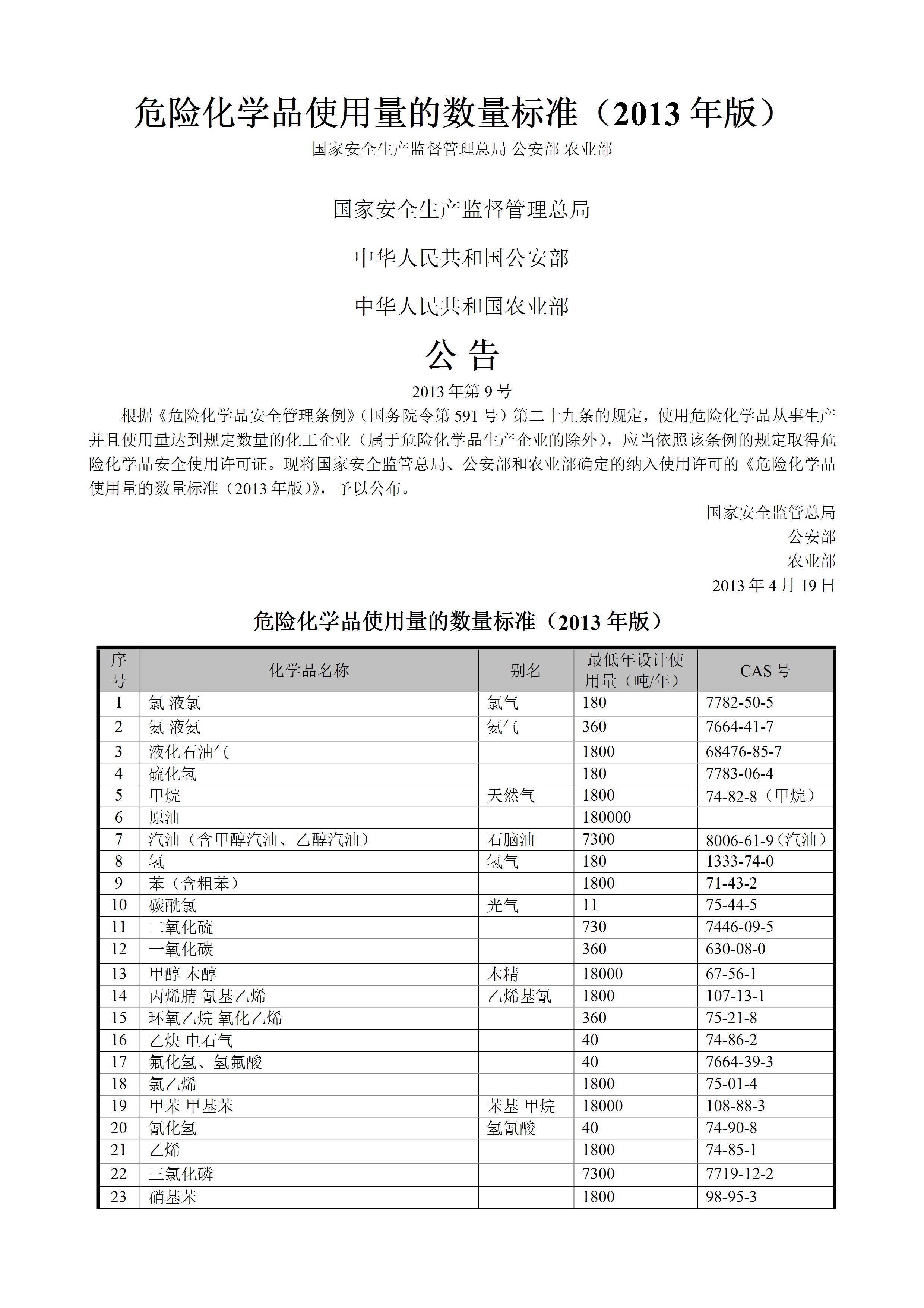 / 危险化学品使用量的数量标准(2013年版)[文档]