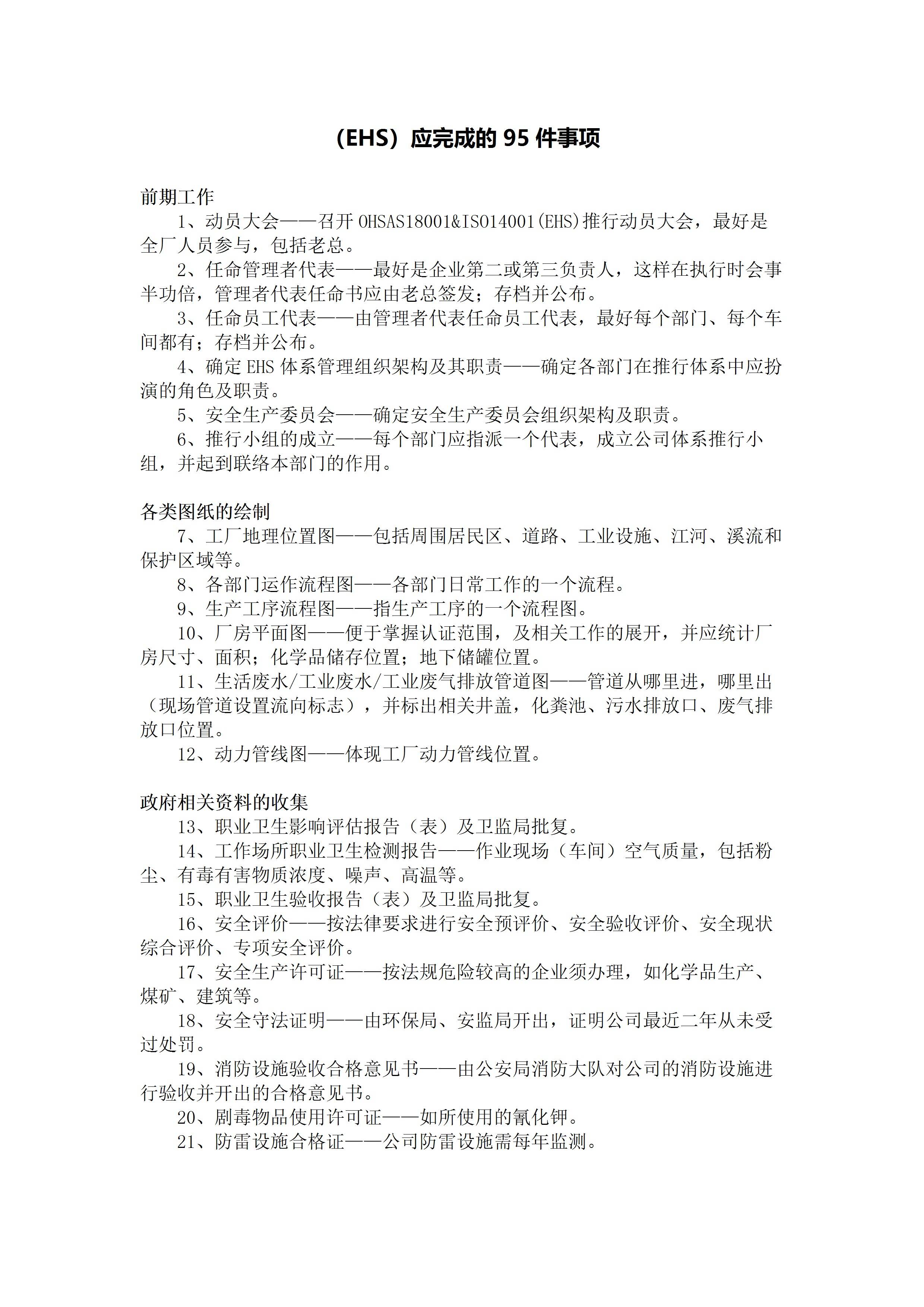 / 推进安全(EHS)工作应完成的95件事项[文档]