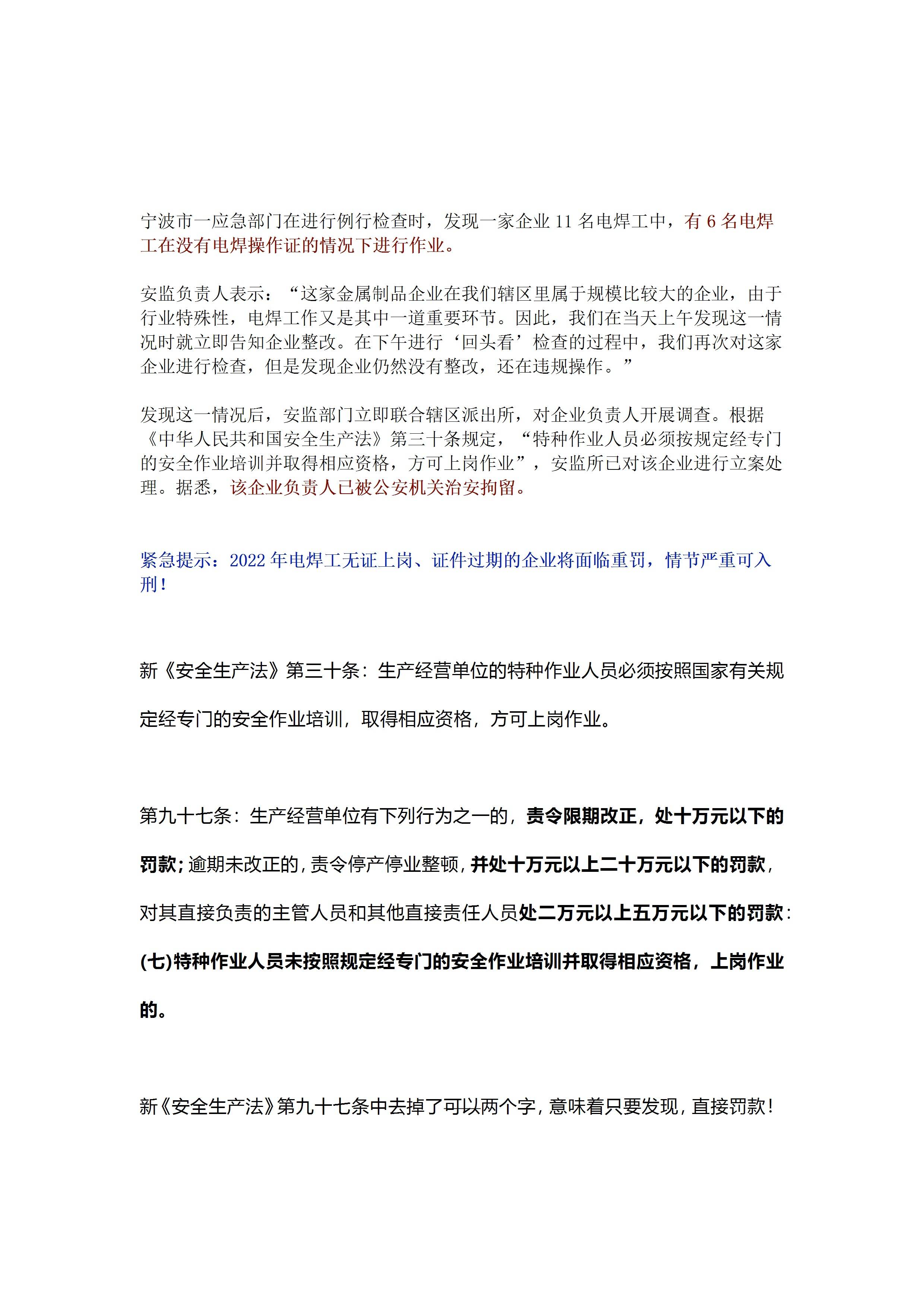 / 突击检查,11名焊工6个无证上岗,企业负责人直接被拘留[文档]
