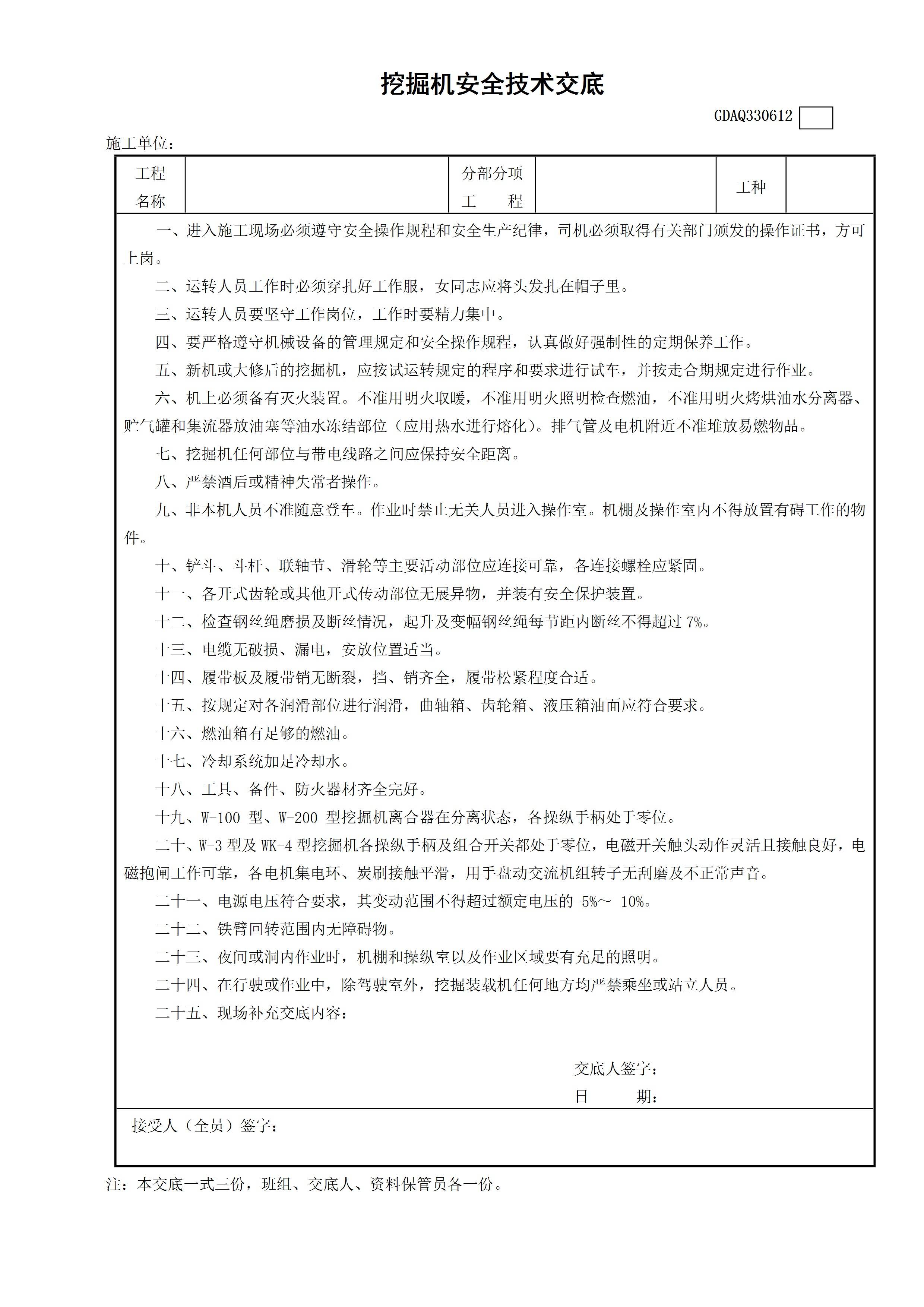 / 挖掘机安全技术交底GDAQ330612[文档]