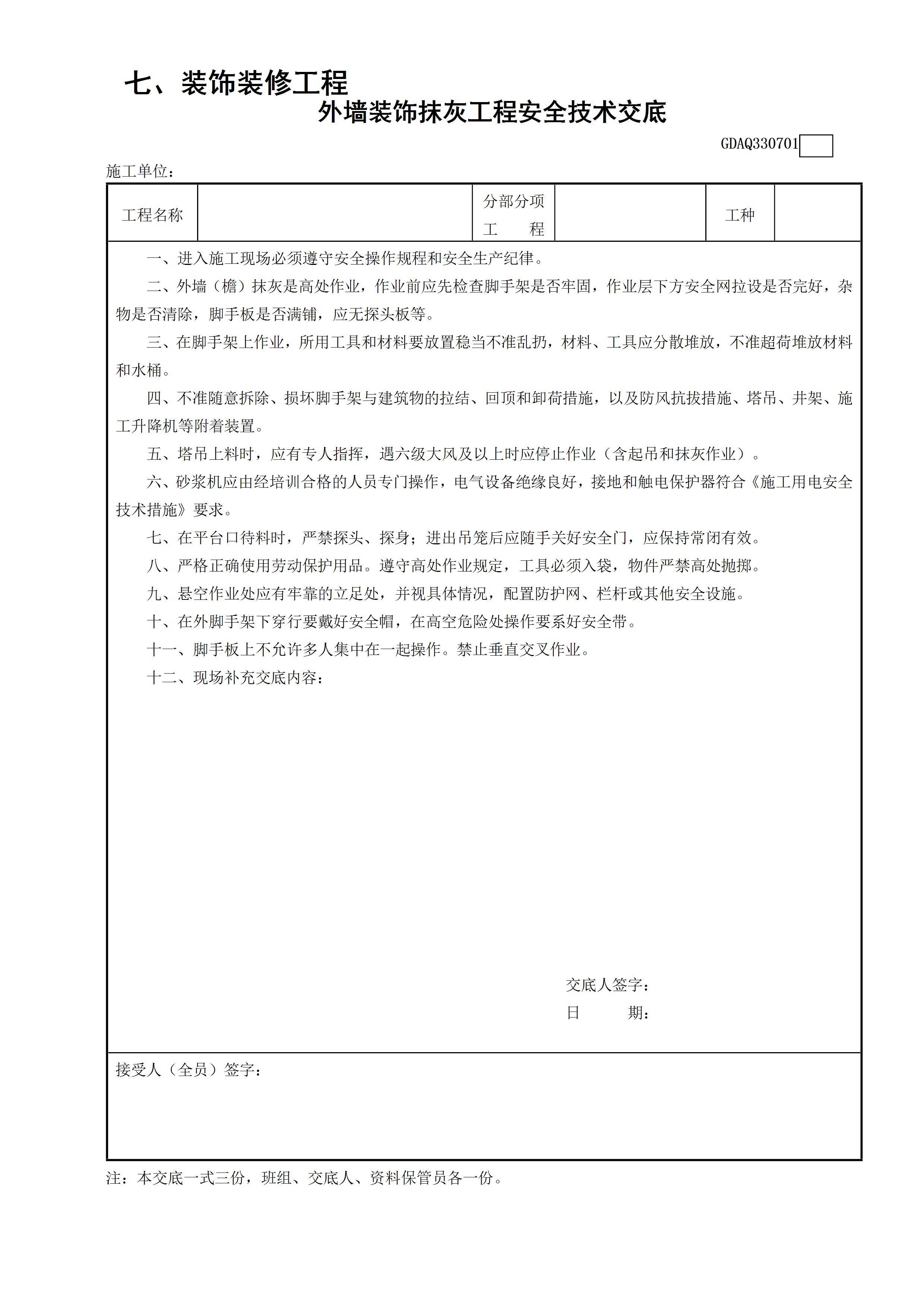 外墙装饰抹灰工程安全技术交底GDAQ330701[文档]