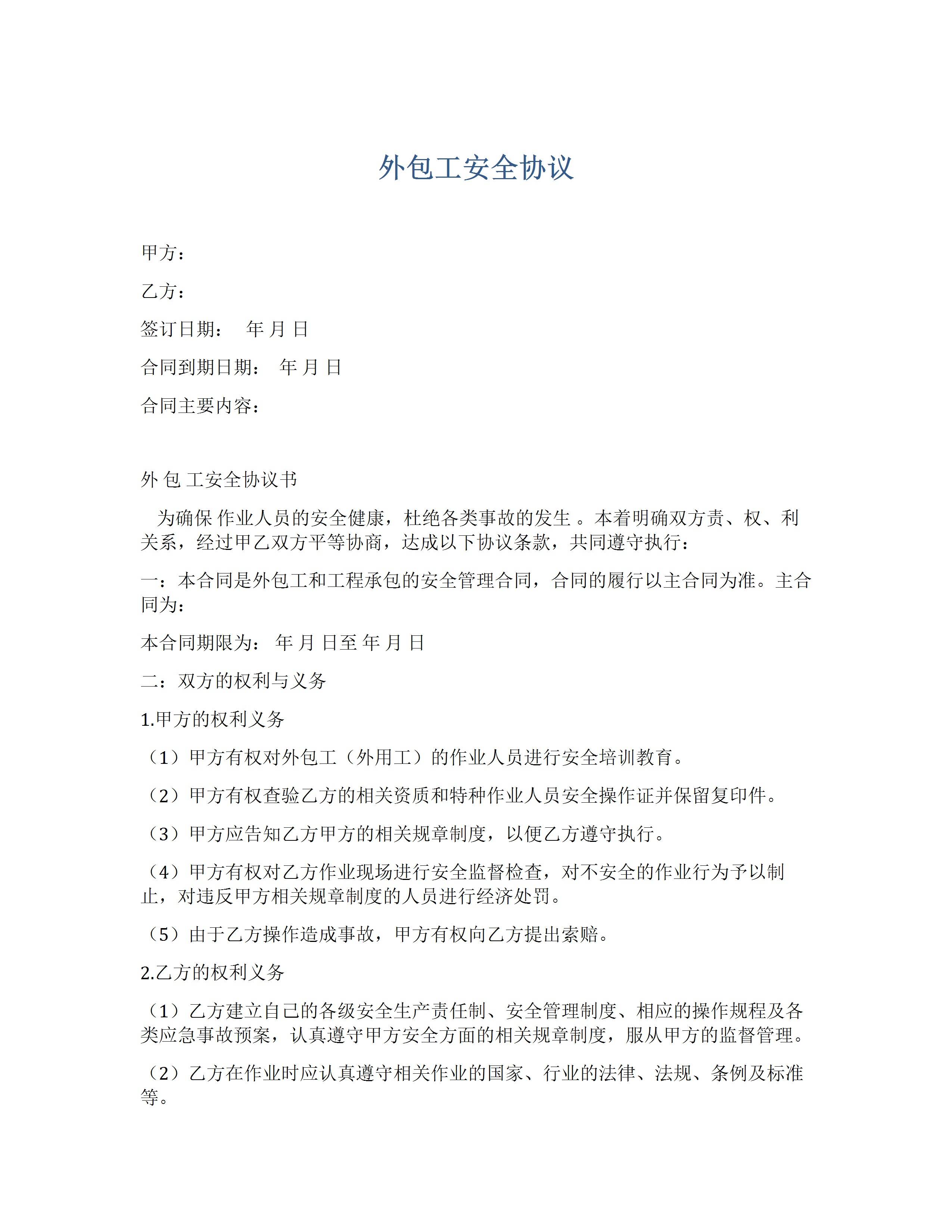 外包工程安全协议书-[文档]