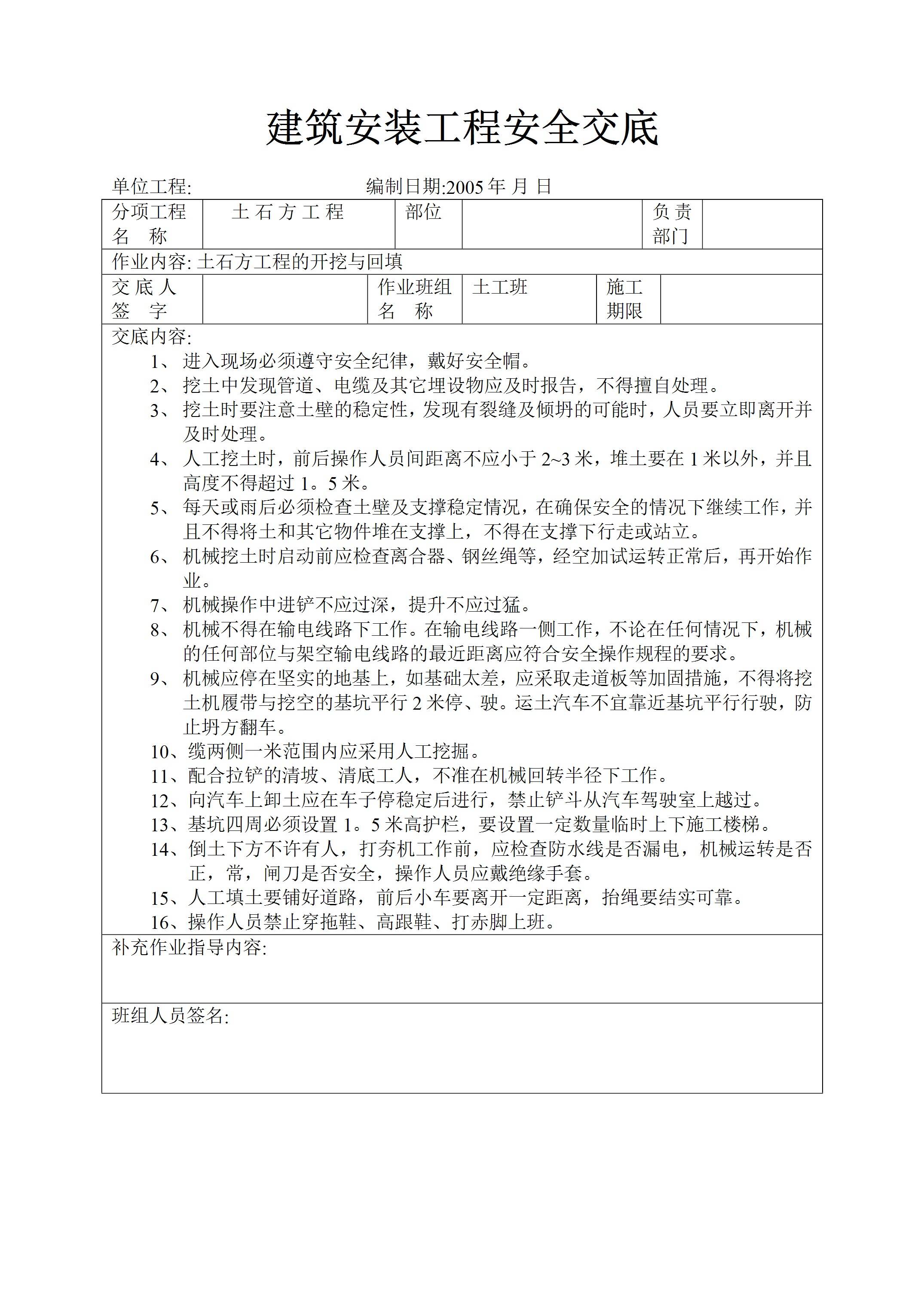 / 土石方工程挖填安全交底[文档]