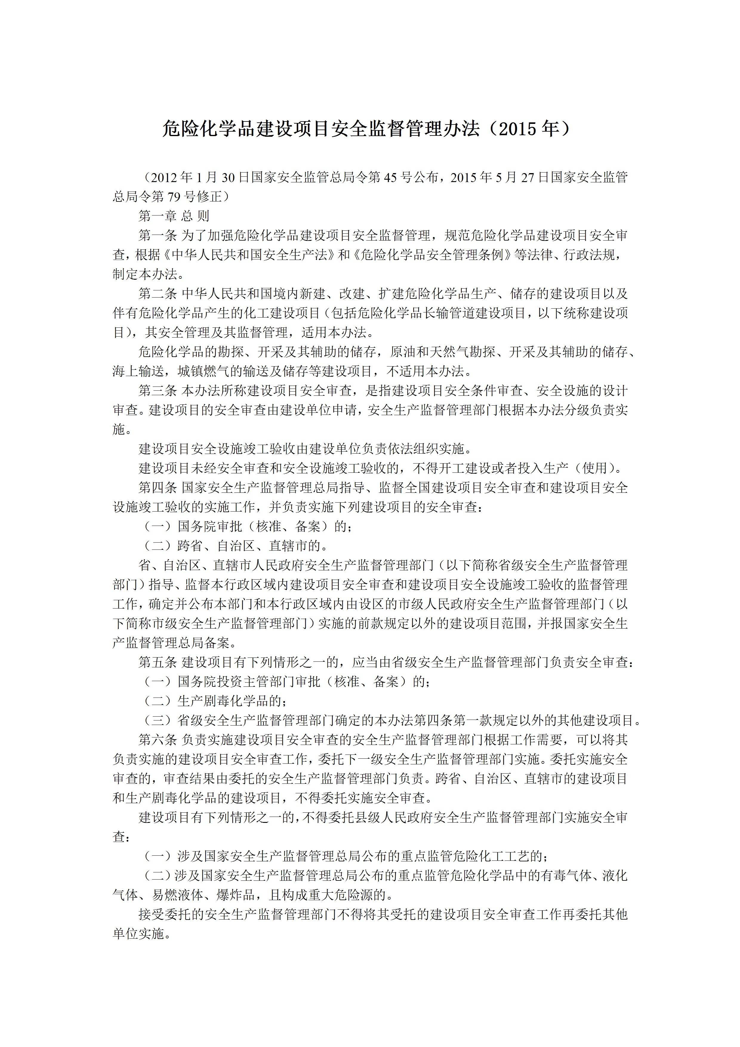 危险化学品建设项目安全监督管理办法(2015年)[文档]