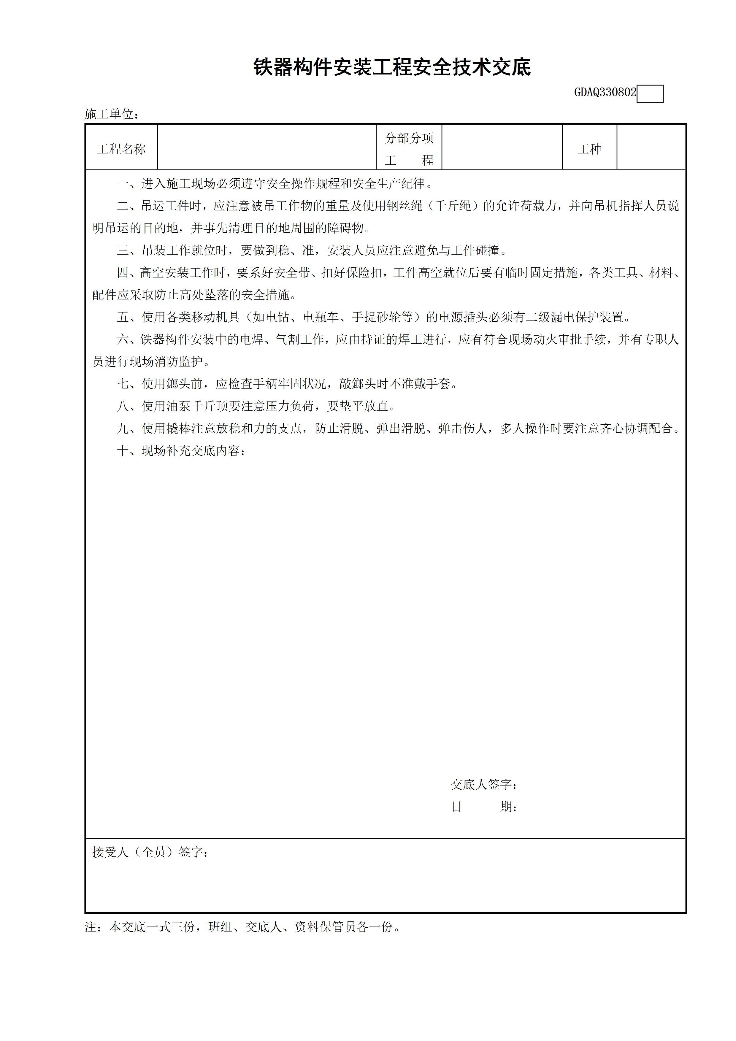 / 铁器构件安装工程安全技术交底GDAQ330802[文档]