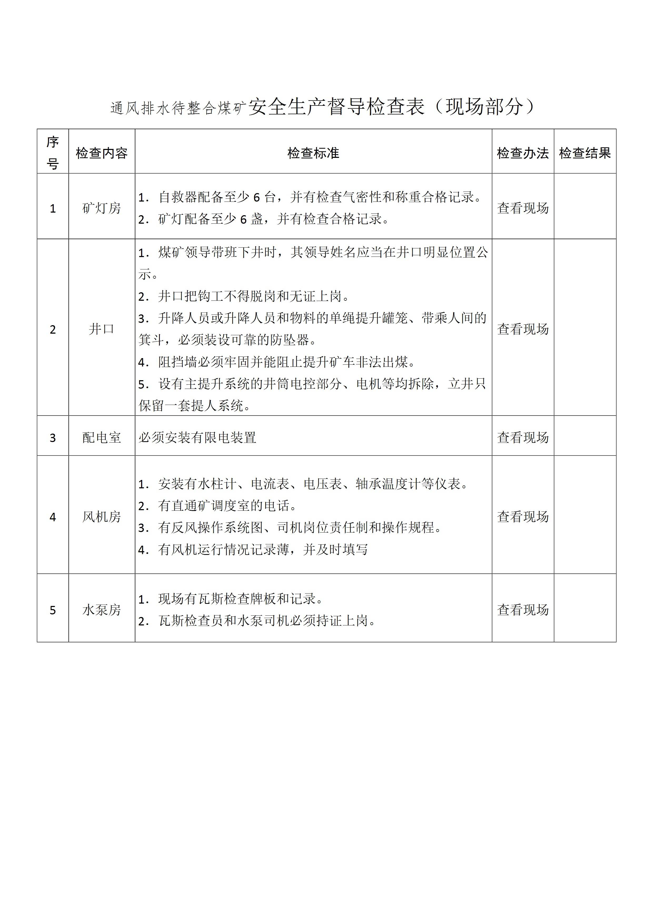 / 通风排水待整合煤矿安全生产督导检查表[文档]