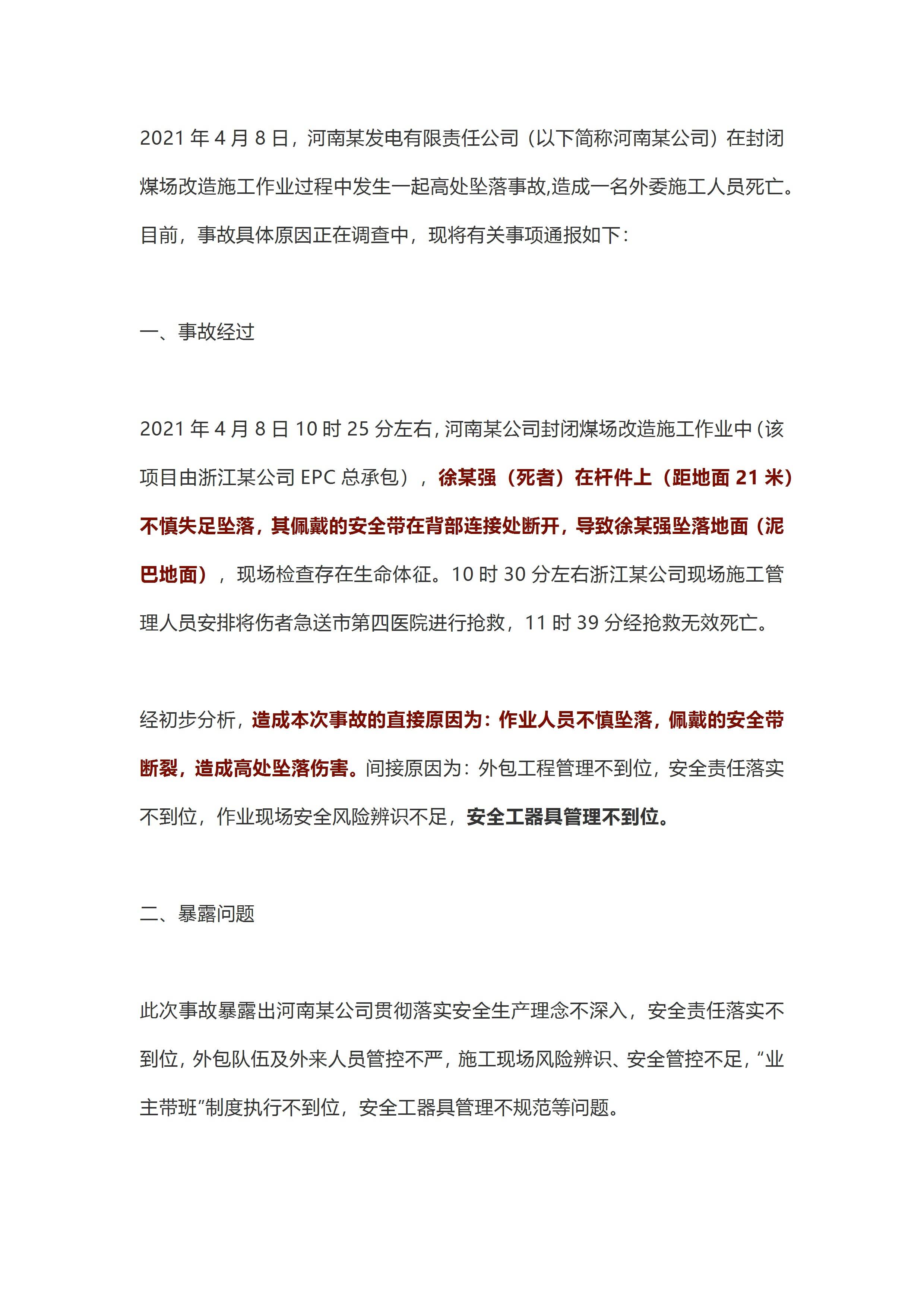 / 通报安全带断裂,坠亡,4月8日某集团公司事故,安全带何时报废[文档]