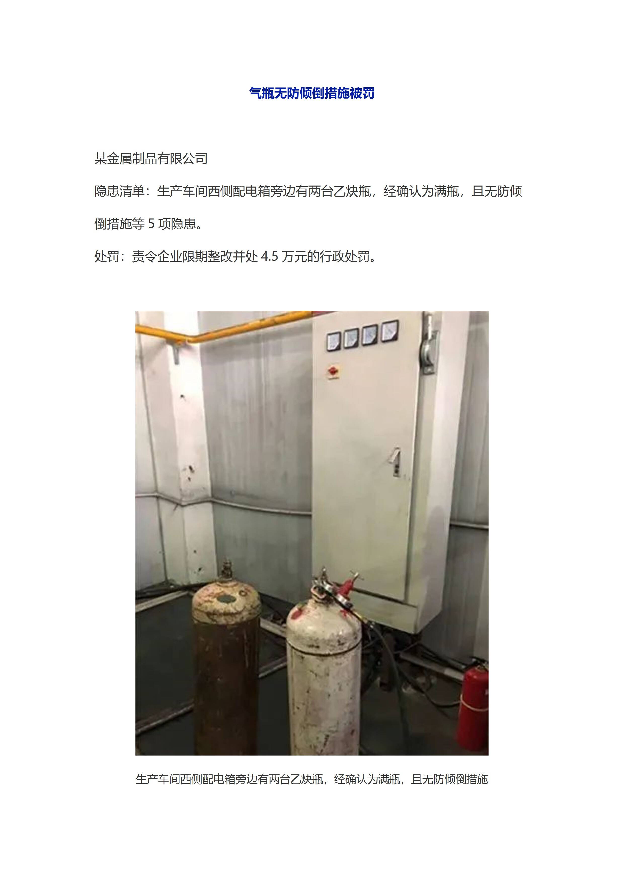 / 通报气瓶无防倾倒措施被罚5万[文档]